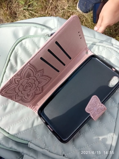 Качественный чехол, заказывала маме. Есть прорези для карт, приятный, не яркий цвет, хорошо упакован.