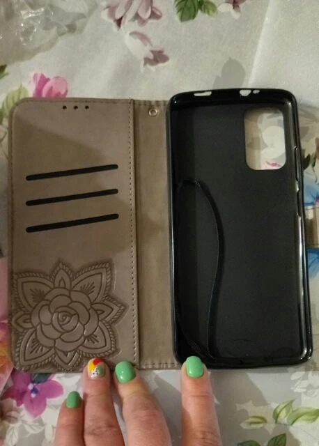 Всё , как на фото , чехол похож на кожу внешне . Есть отделения для карт , магнит хороший . Единственное не удобно при долгом разговоре ( добавляет размер прилично и не комфортно в женской руке ) . Доставка и отправка быстрая в Москву . Продавца рекомендую