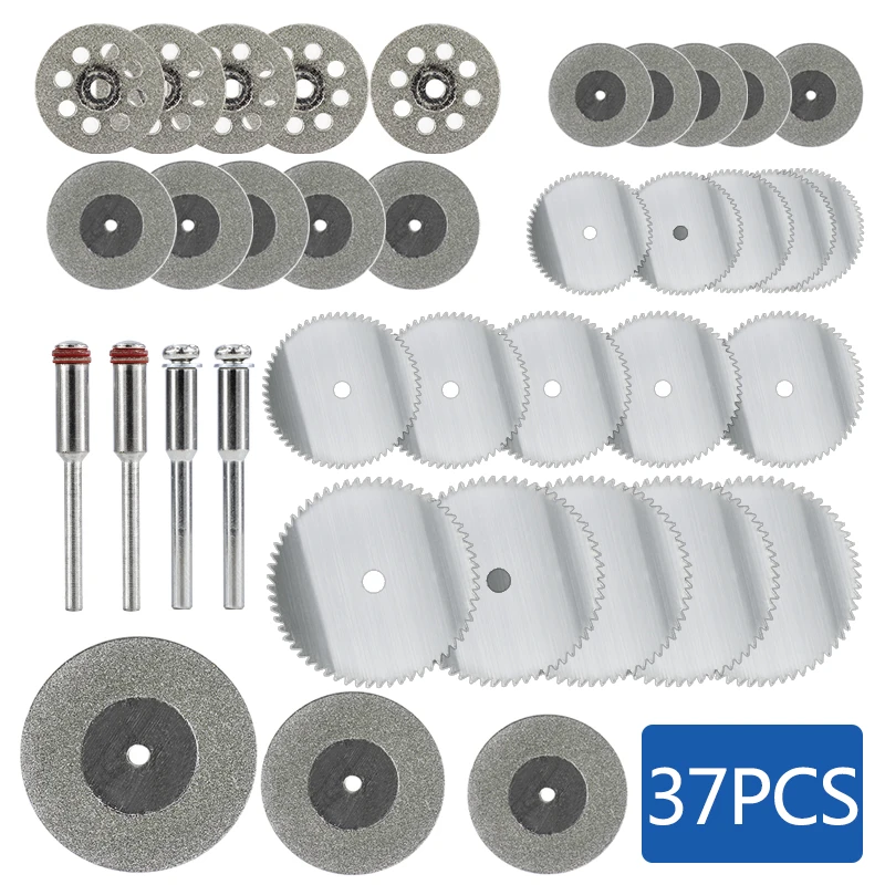 Набор алмазных пильных дисков CMCP, 37 шт., лезвия для мини-пилы по дереву и металлу, отрезные диски из смолы для вращающихся инструментов Dremel, набор электроинструментов