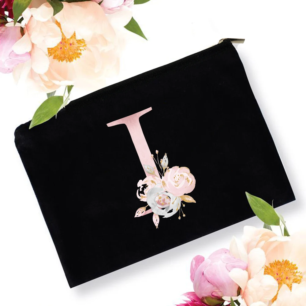 Косметички с цветочным принтом и алфавитом, модные холщовые черные ...