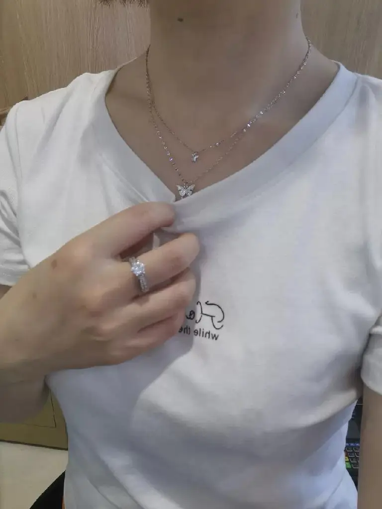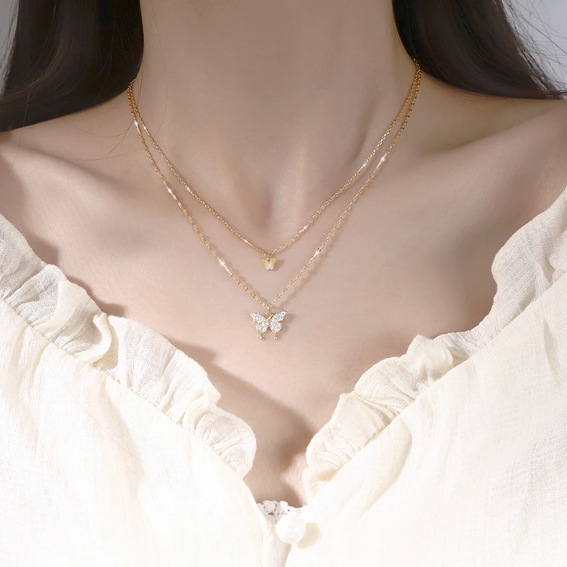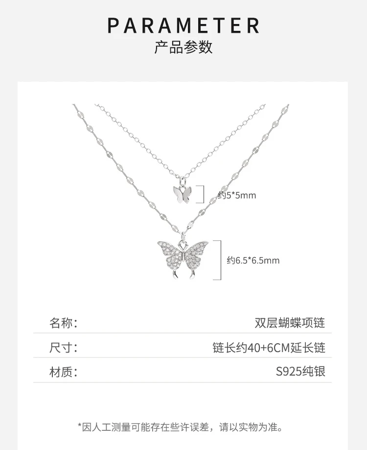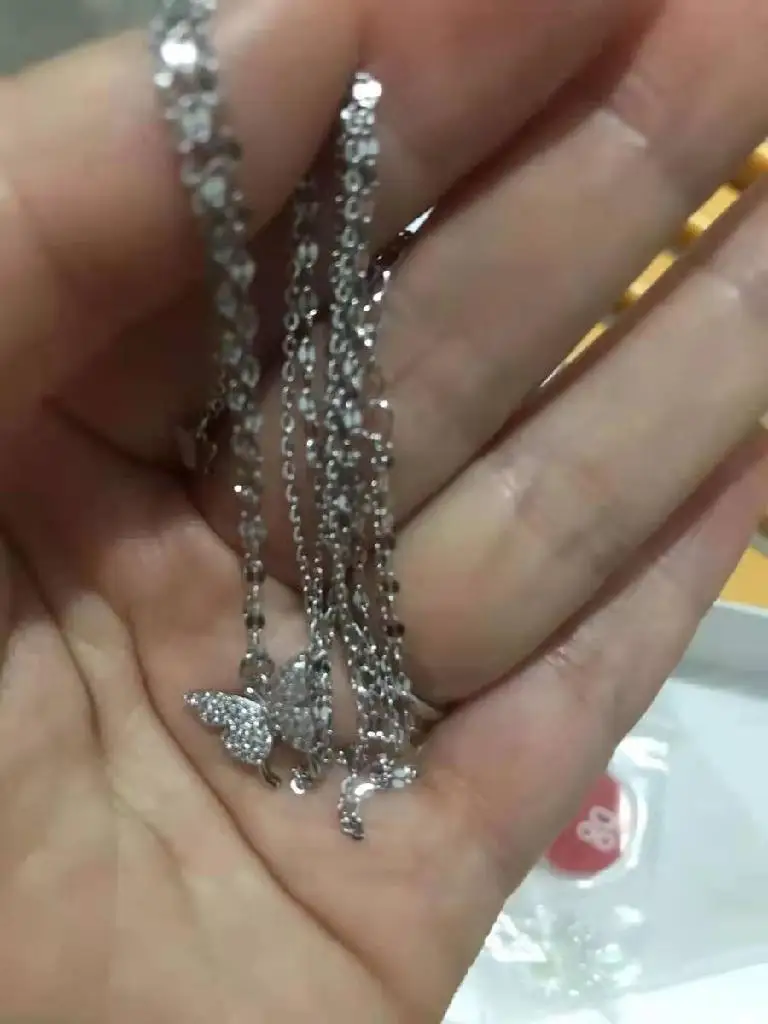 Ожерелье из серебра 925 пробы, двухслойная цепочка длиной до ключиц, с бабочкой и блестящими бриллиантами