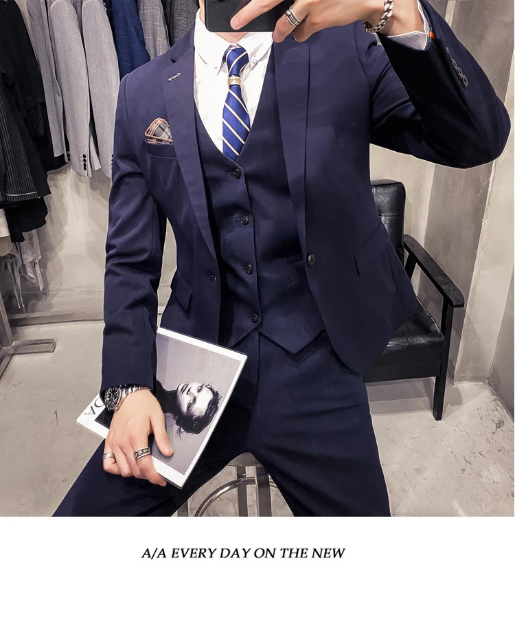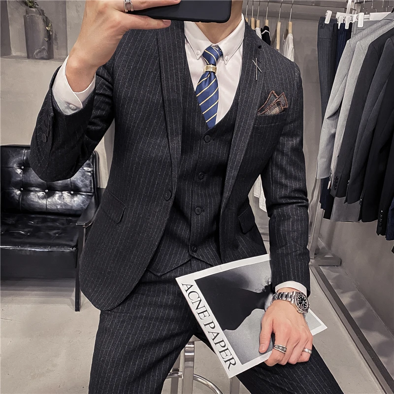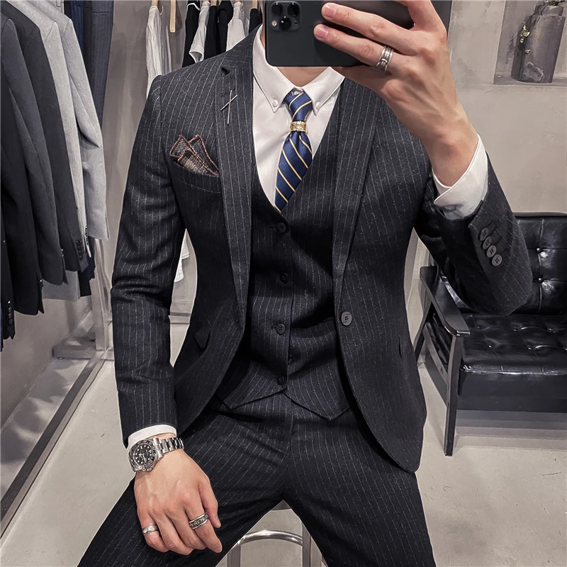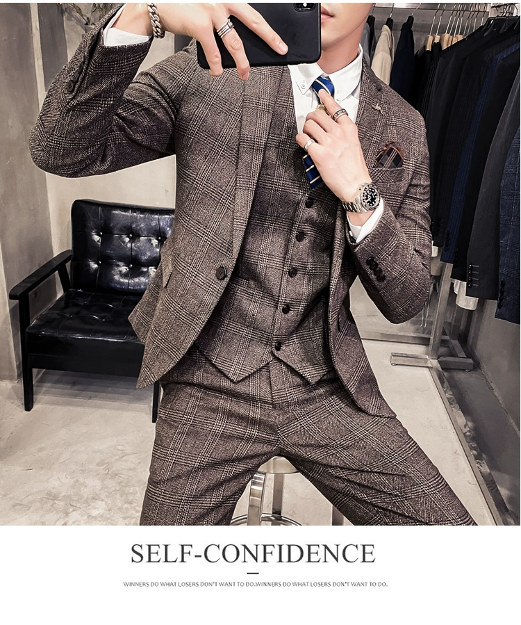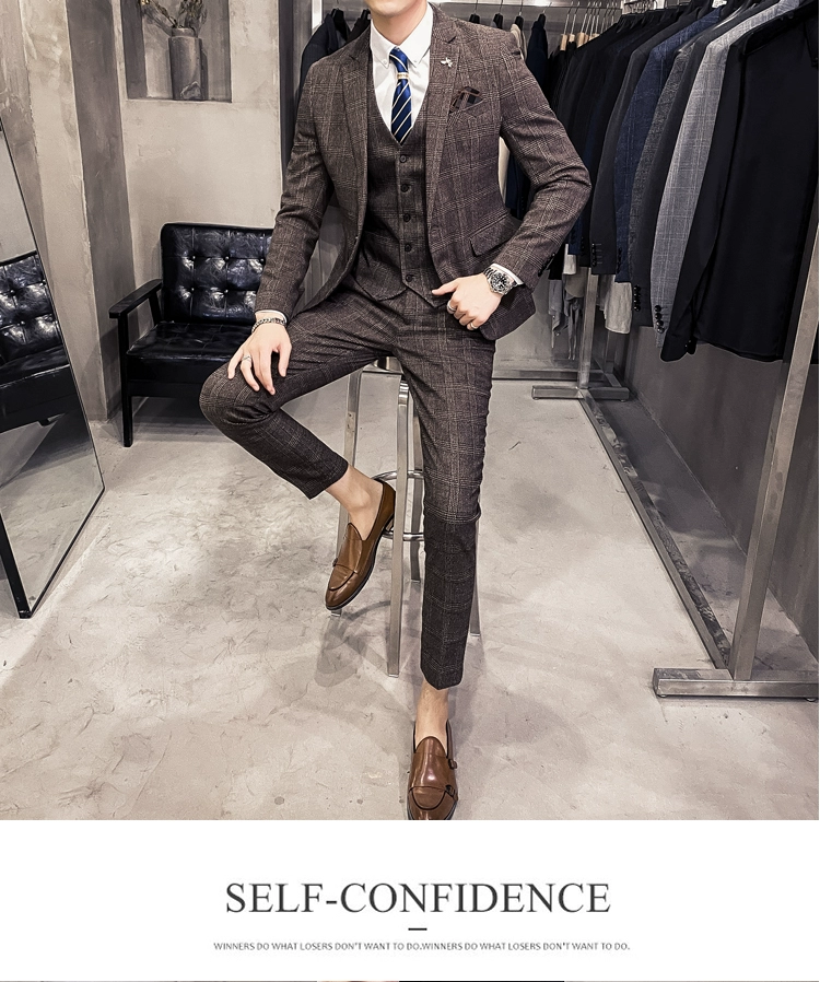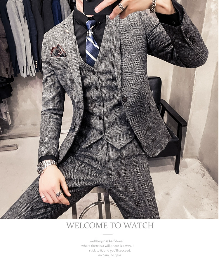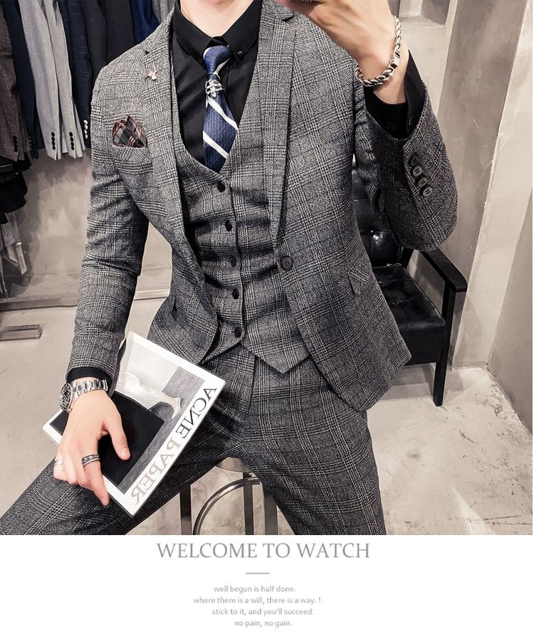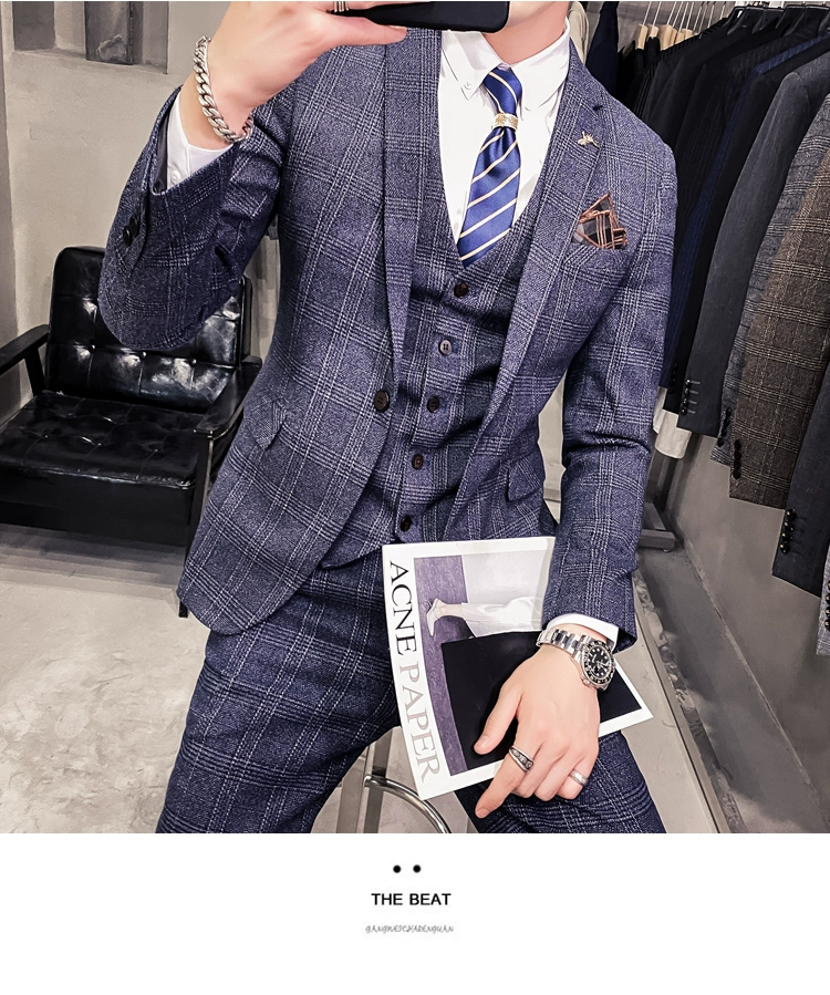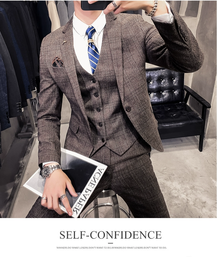 Мужские корейские блейзеры 6XL 7XL (куртки + жилет + брюки), облегающий Британский деловой костюм в клетку, мужское свадебное платье для жениха из трех предметов