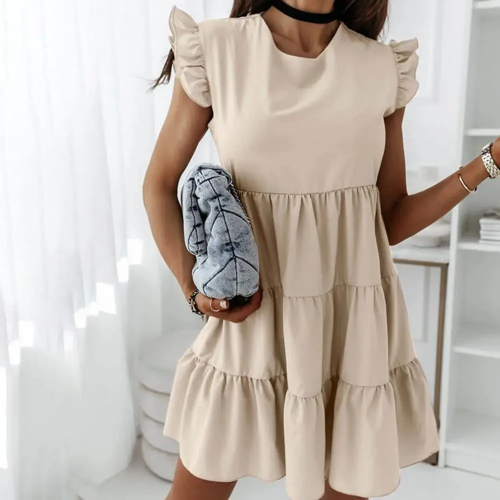 Женское вечерние с круглым вырезом, с коротким рукавом, однотонное, с круглым вырезом