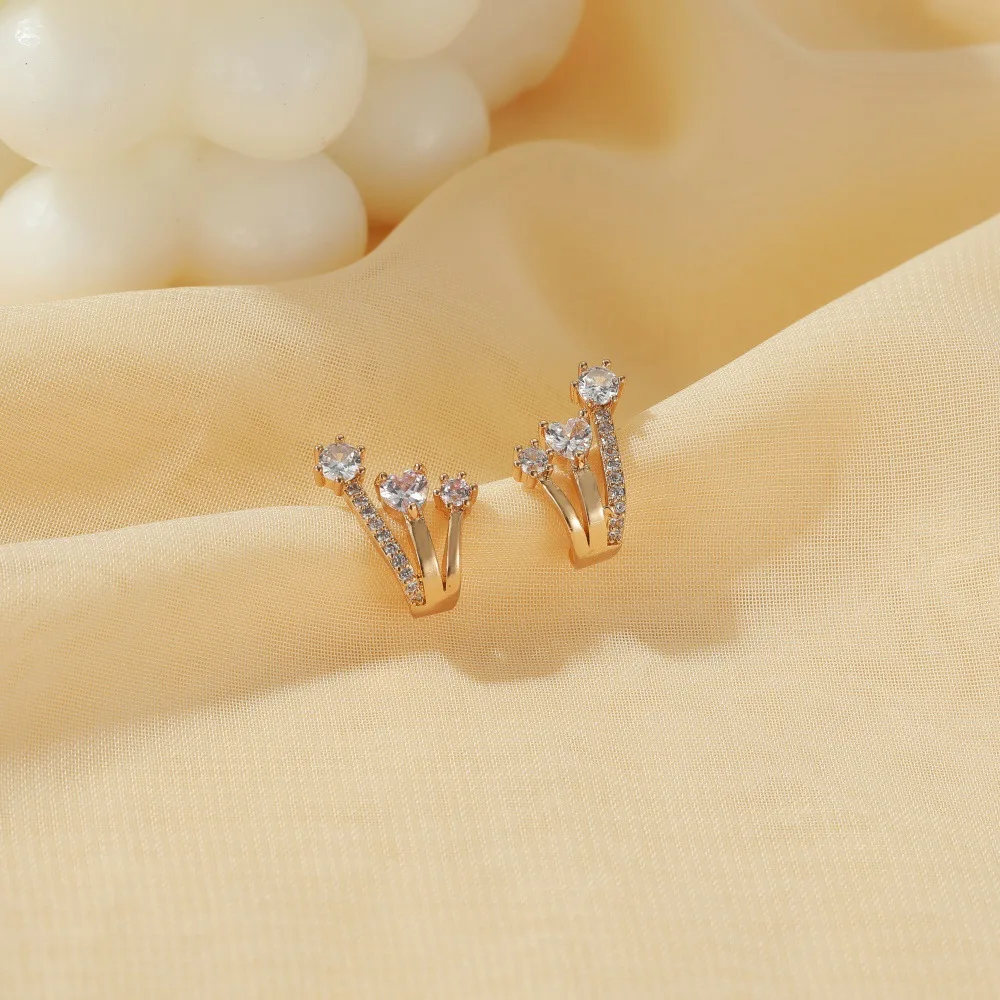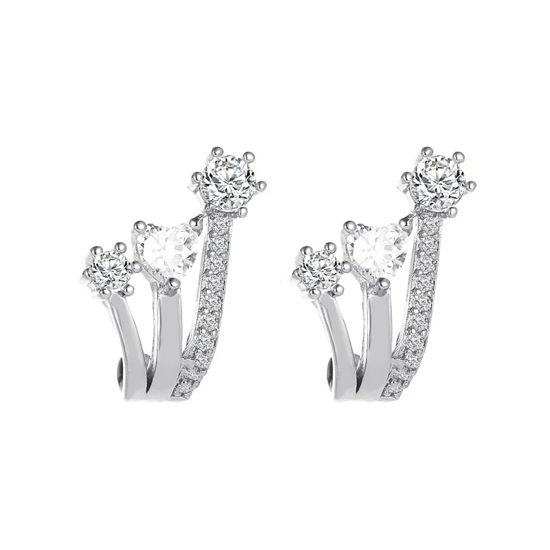 Женские U-образные серьги-клипсы с фианитом, без проколотых ушей