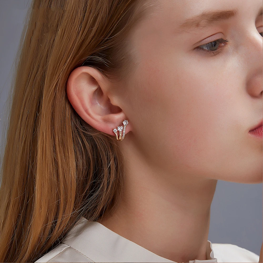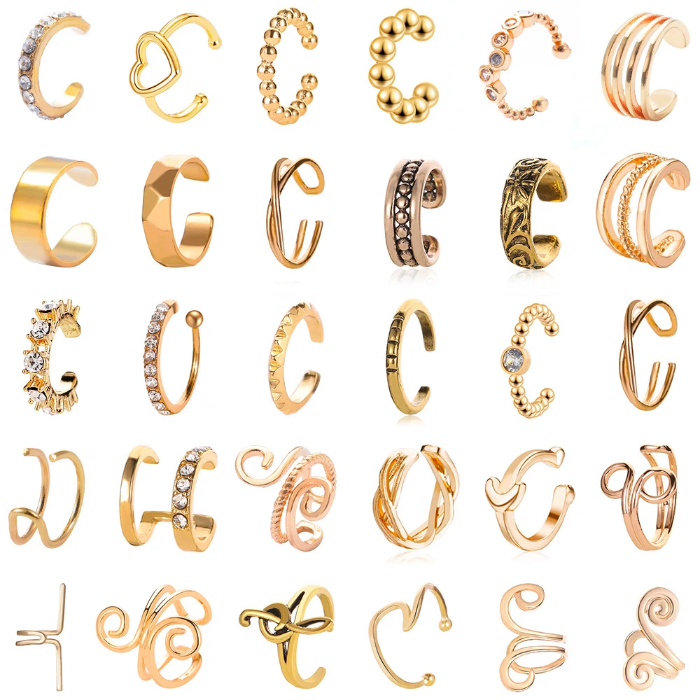 Многослойные Модные клипсы стразы серьги-каффы для женщин C-образны...