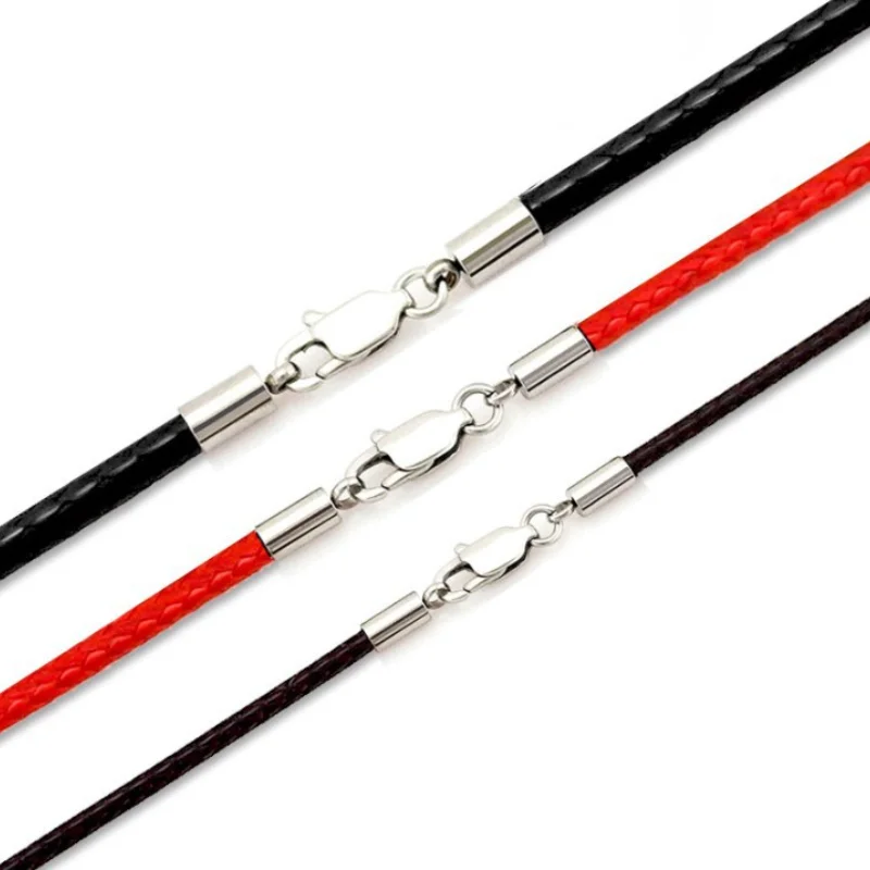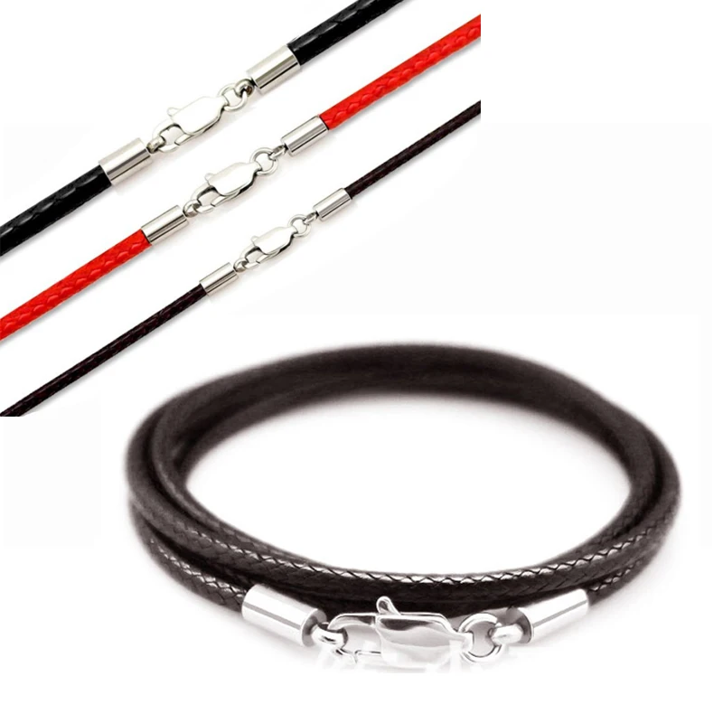 Черное Кожаное вощеное веревочное Кольеожерелье, застежка-лобстер из нержавеющей стали, соединитель, пряжка, шнур, шнурок для подвесок, ювелирных изделий
