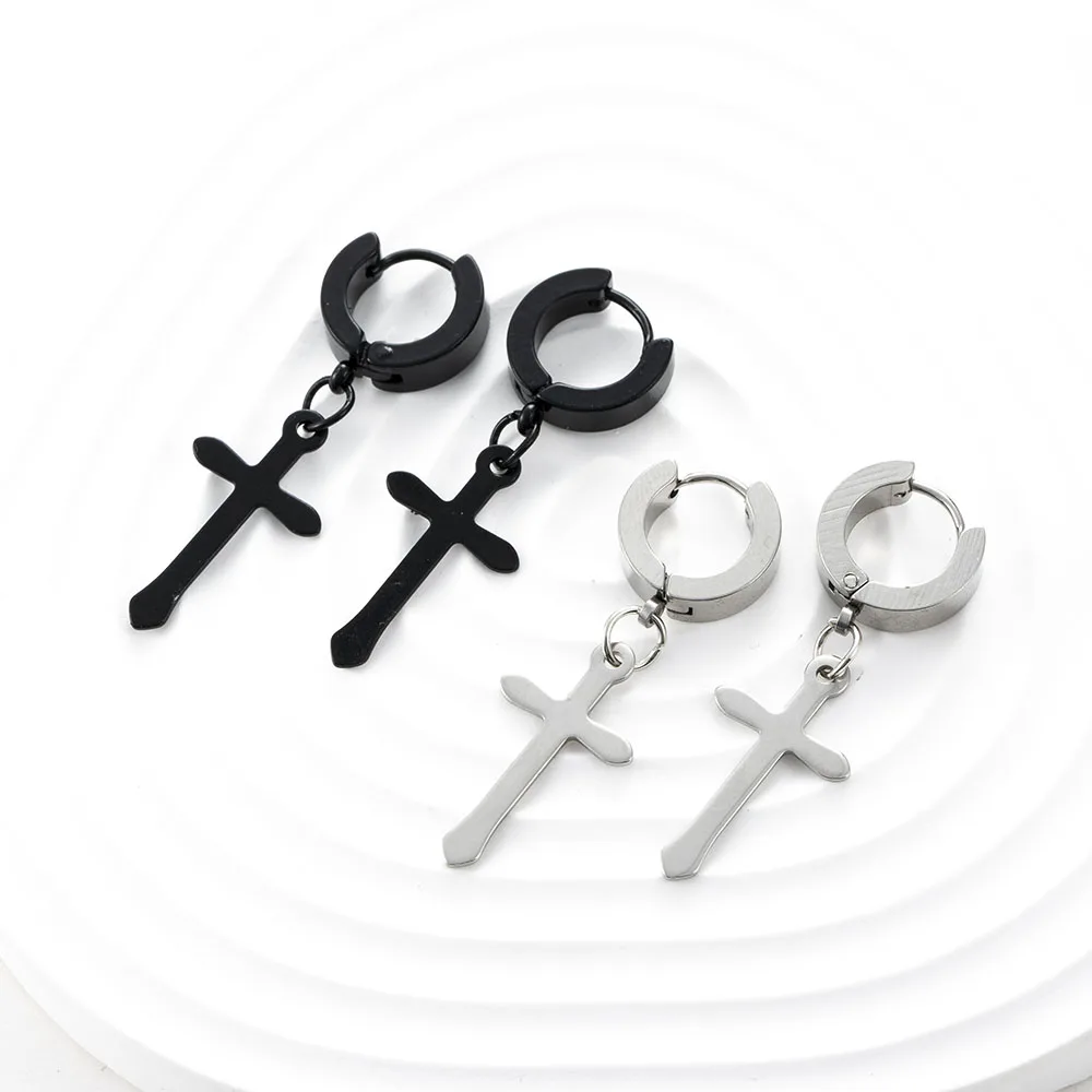 Модные мужские серьги из нержавеющей стали с подвеской в виде креста, висячие серьги в виде хряща, ювелирные украшения в стиле панк для крутых женщин, девочек, подарки дружбы