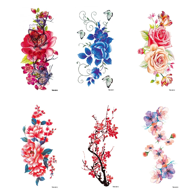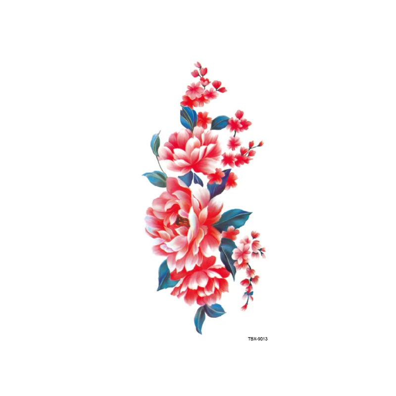 Татуировка, 24 цвета, пион, роза, наклейка, флеш-тату из хны, поддельная, водонепроницаемая, временная татуировка, одноразовая, для тела