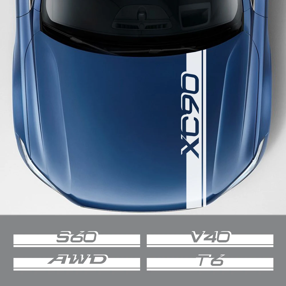 Автомобильные наклейки на капот для Volvo XC90, S60, V40, AWD, T6, V50, V60, V90, XC40, XC60, S90, C30, C70, S80, V70, XC70, аксессуары для капота двигателя