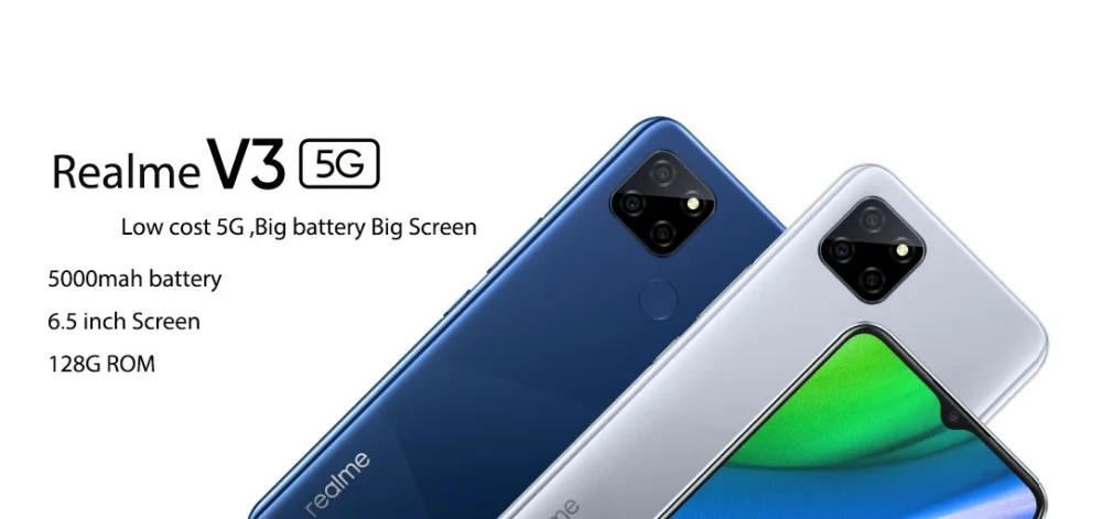 Смартфон Realme V3 на Android, экран 6,5 дюйма, 5000 мАч, две Sim-карты, Процессор MTK 720, быстрая зарядка 18 Вт, 8 ГБ ОЗУ 128 Гб ПЗУ, камера 13 МП