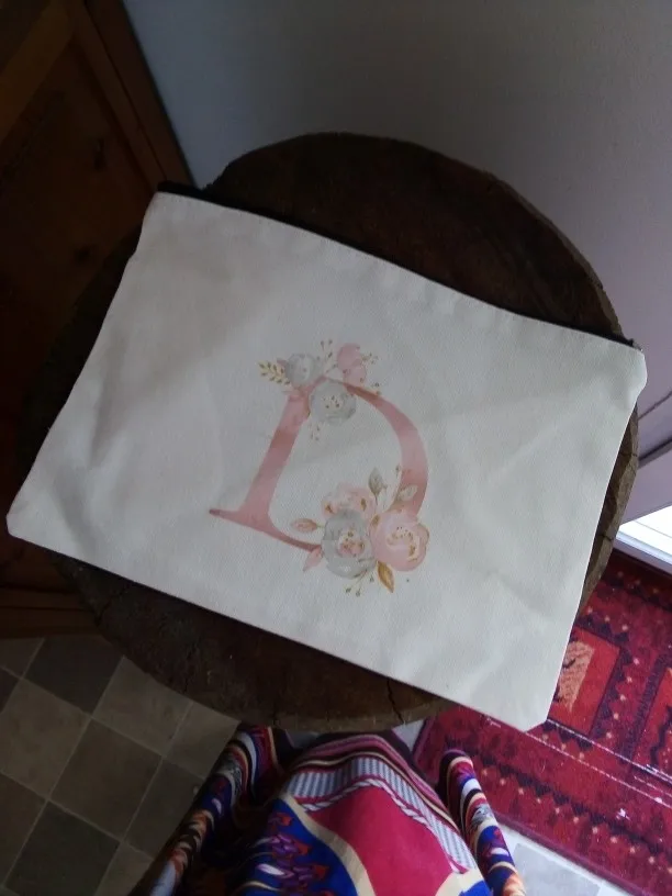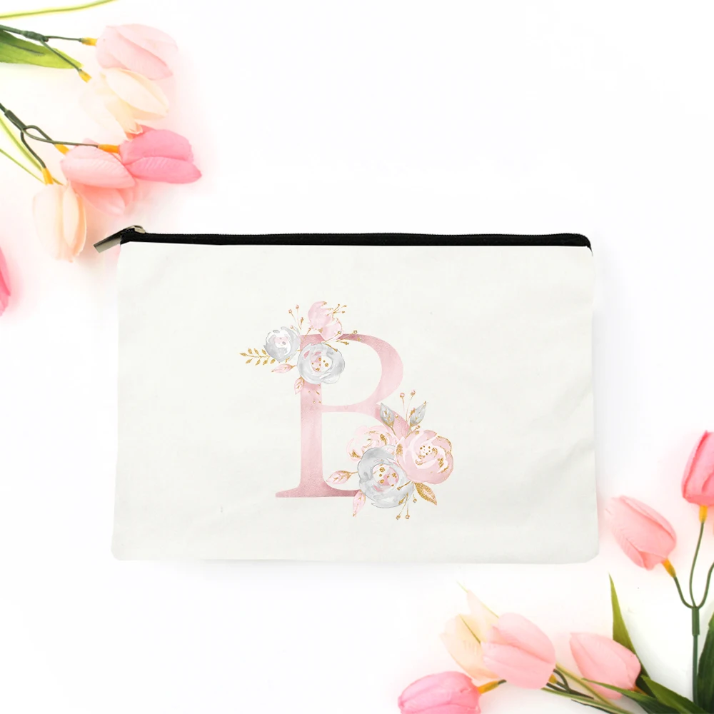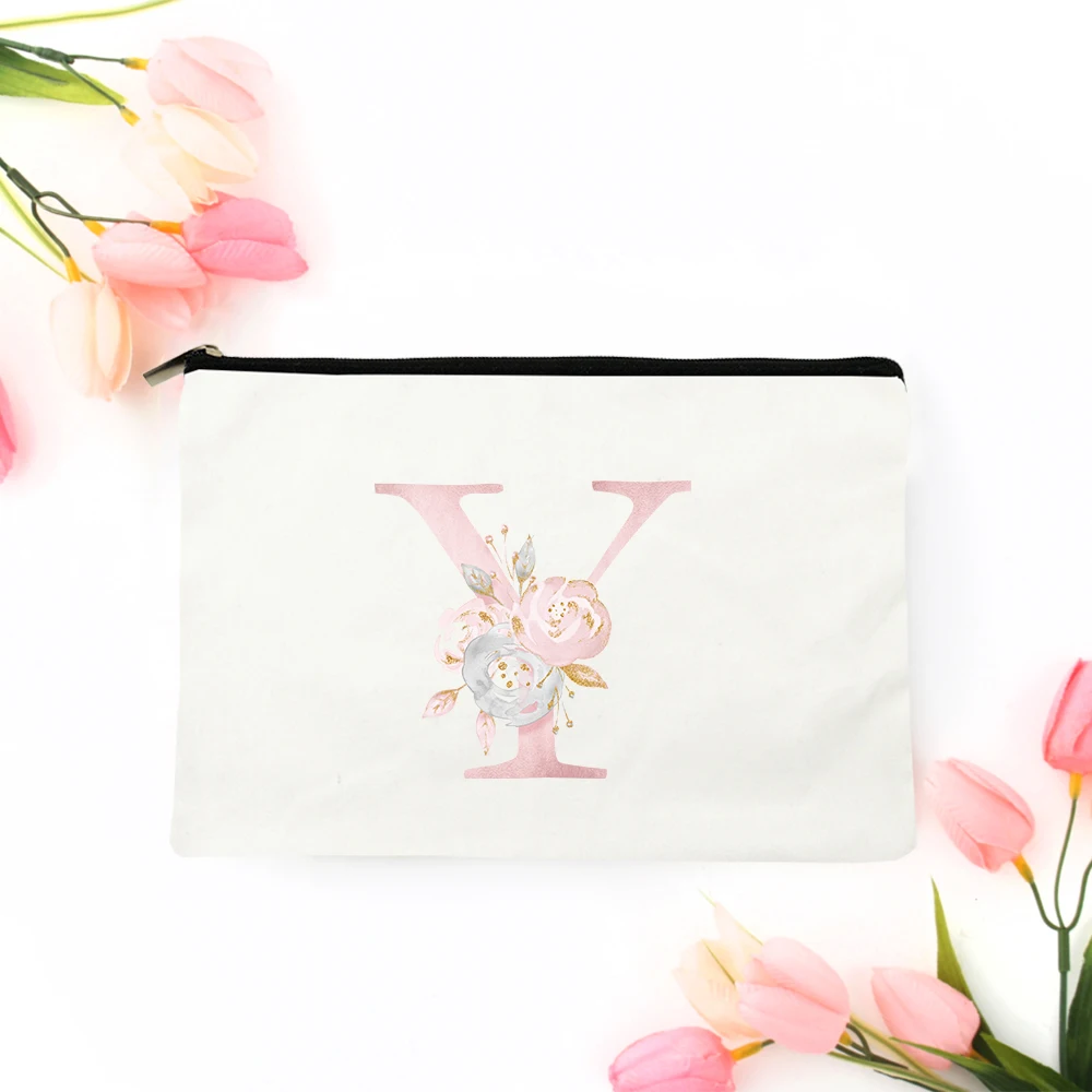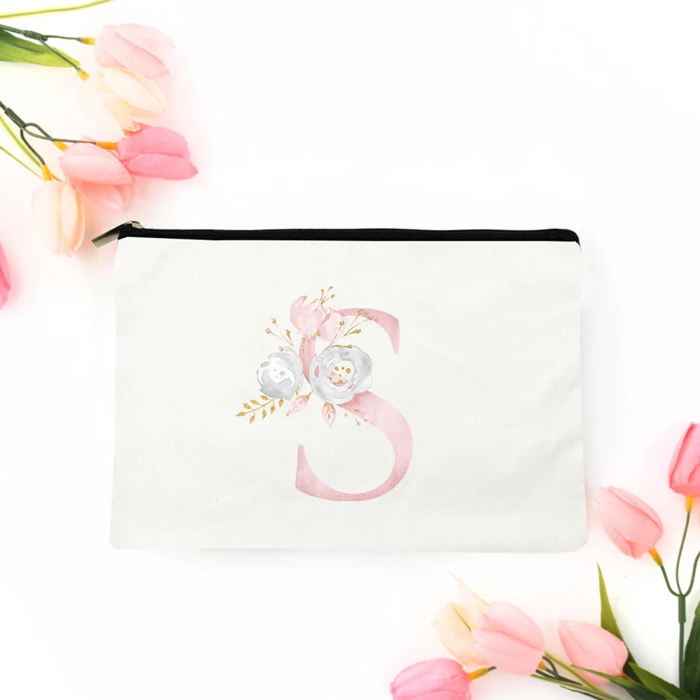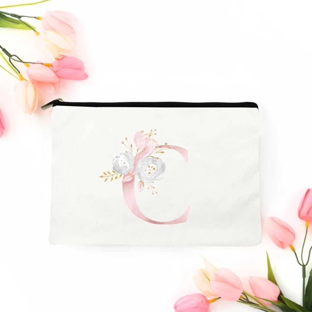 Модные косметички с цветочным алфавитом, чехлы, белая тканевая сумочка на молнии, сумочка для туалетных принадлежностей, дорожная холщовая Сумочка с индивидуальным именем и буквами