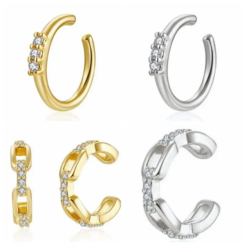 1 шт 24k позолоченные серебряные геометрические серьги-клипсы для женщин минималистичные Хрустальные манжеты для ушей без пирсинга серьги ювелирные изделия подарок