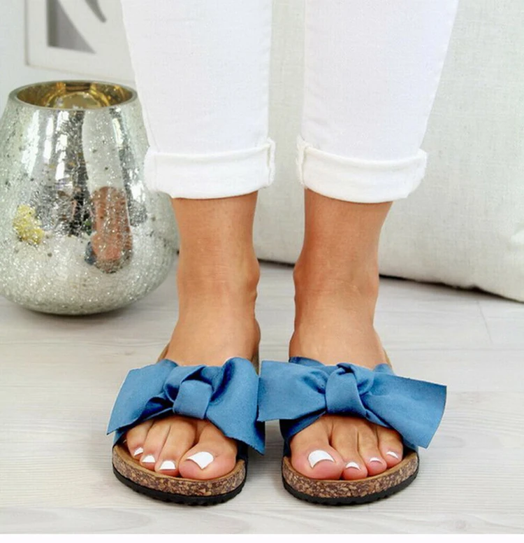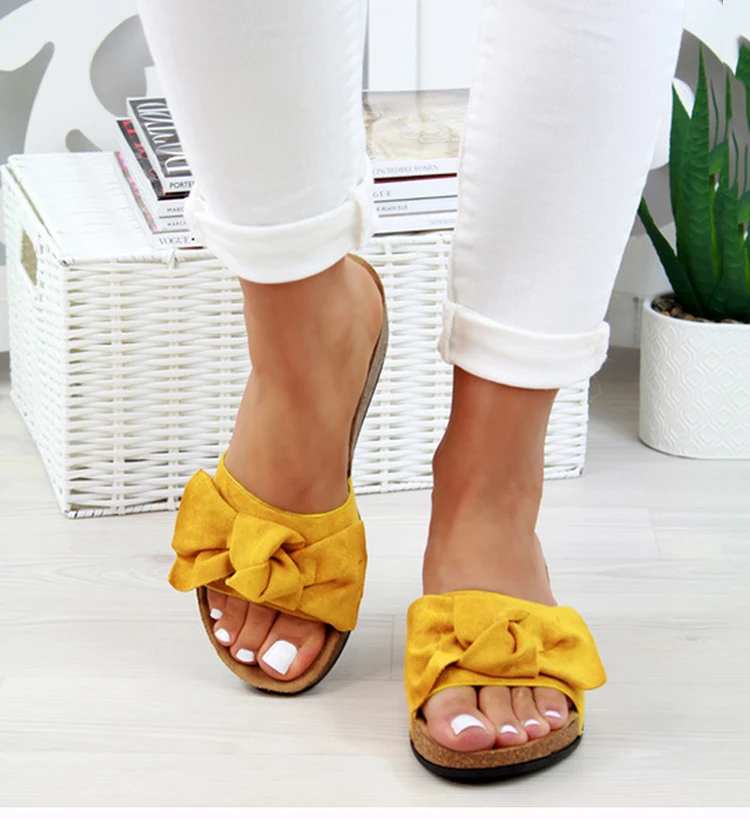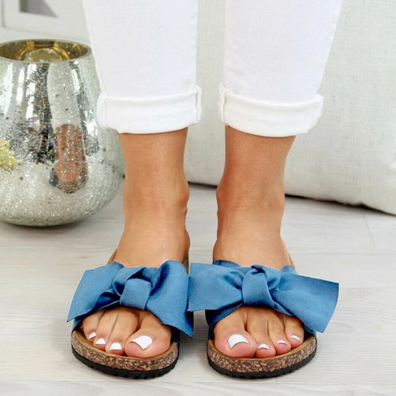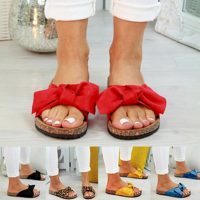 2021 женские босоножки; Милые летние туфли на плоской подошве с бантом; Женская повседневная обувь; Удобные женские сандалии размера плюс