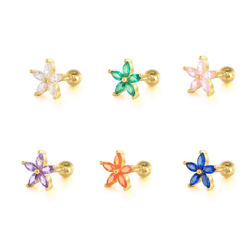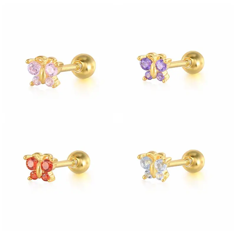 Автоклав с принтом бабочки и цветка Цветной циркониевые серьги 925 стерлингового серебра серьги-гвоздики для женщин пирсинг ювелирные Pendientes