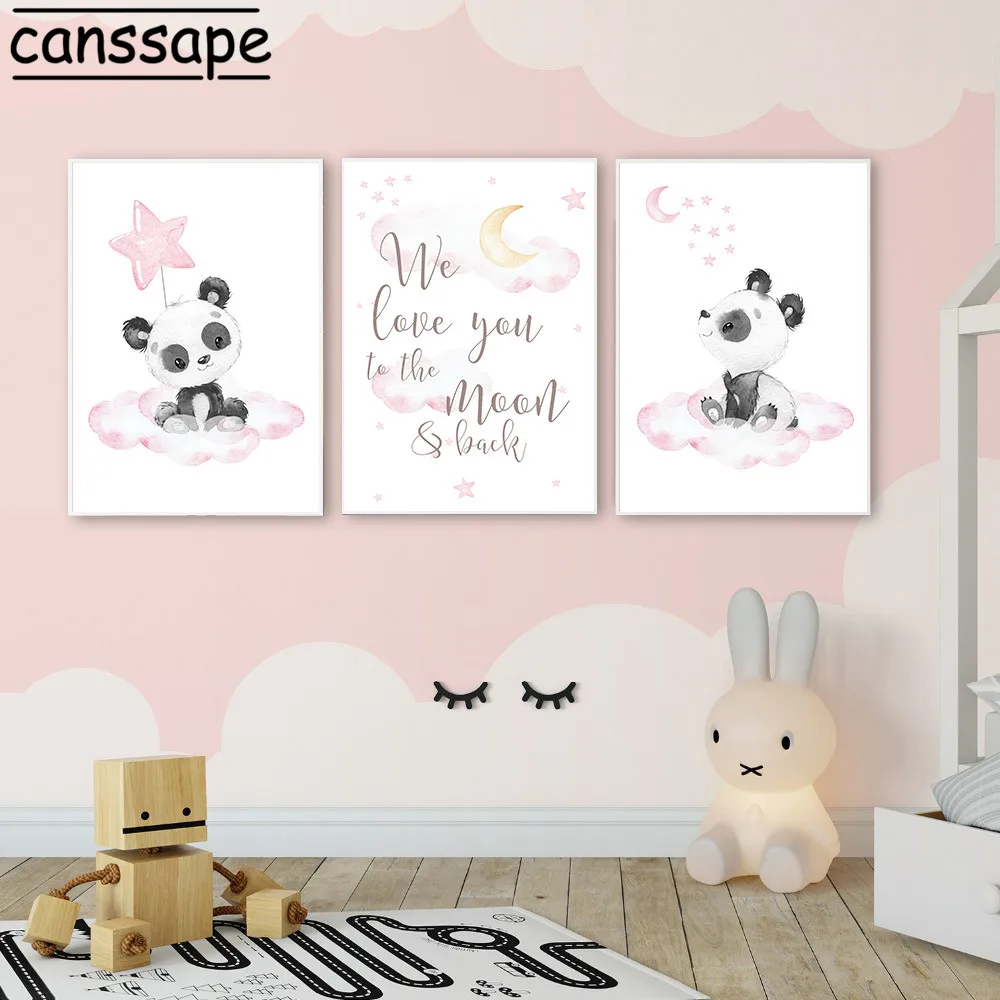 Плакат на холсте с пандой, луной, звездой, облаком, настенная живопись для детской комнаты, постеры с скандинавскими картинами, украшение для детской спальни