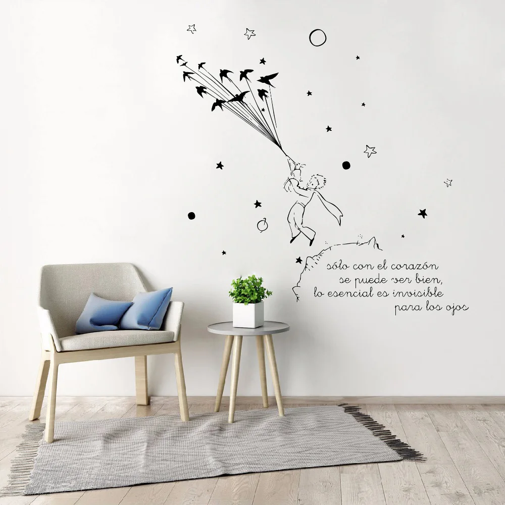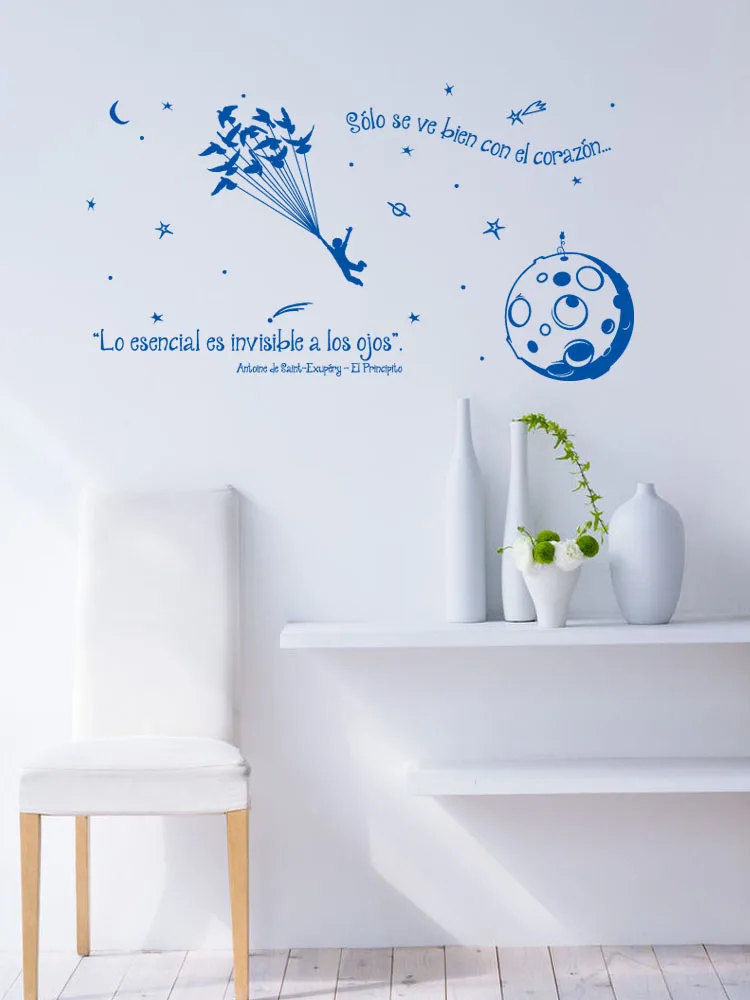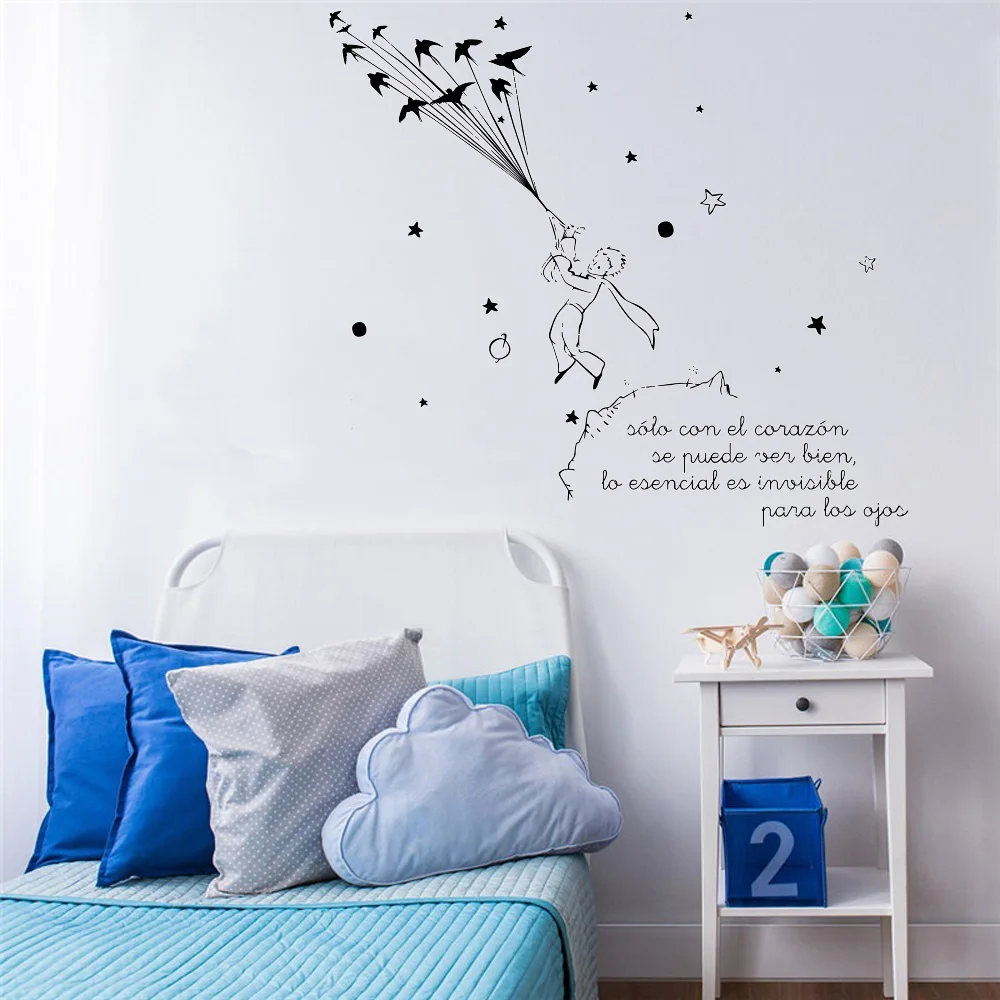 Мультяшный Маленький принц, наклейка на стену в детскую, только с сердцем, Маленький принц, цитата, Виниловая наклейка, детская живопись, Настенная Наклейка