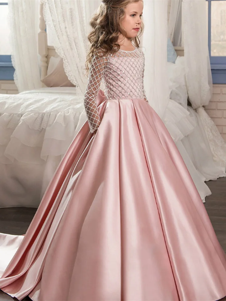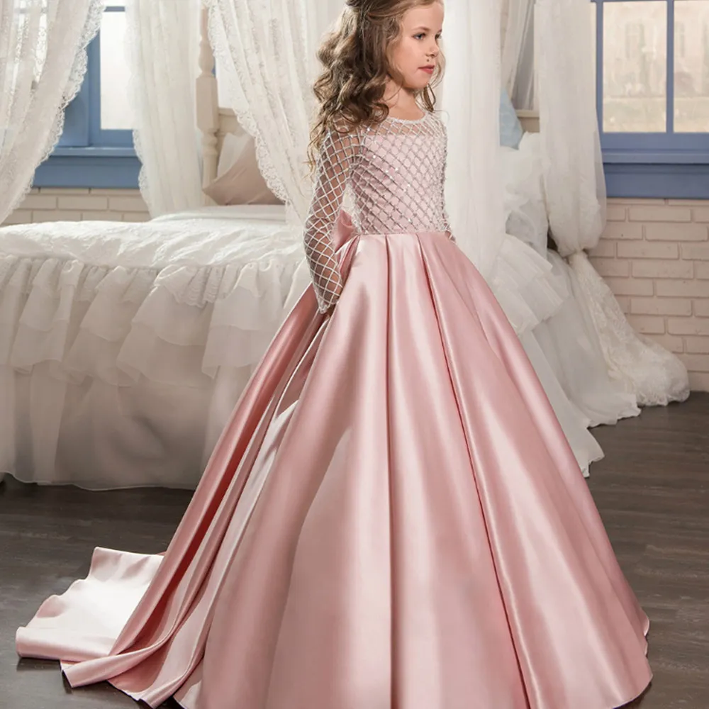 Цветочные платья для девочек на свадьбу, кружевные пышные платья с бантом для девочек, платья для первого причастия, прекрасное бальное платье