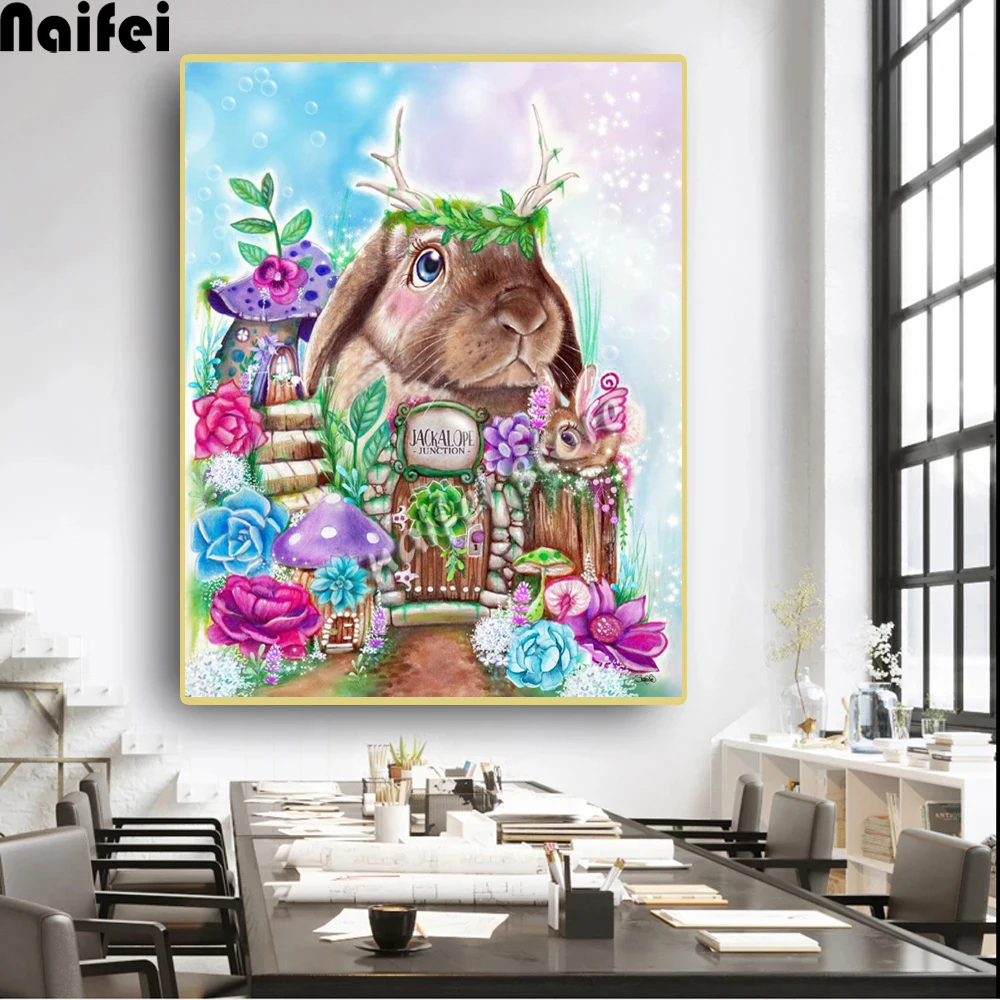 Украшение для дома с кроликом, алмазная живопись, аксессуары, фантазия, цветок, эльф, 5d, вышивка, значки, животные, стразы, украшение для дома