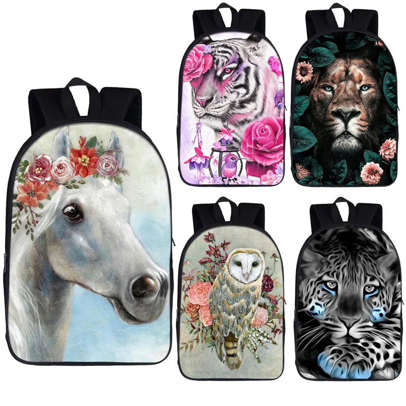 Милый рюкзак с животными, тигром, лошадью, львом, совой, рюкзак для подростков, детские школьные ранцы, женский рюкзак, школьный рюкзак, сумка для книг