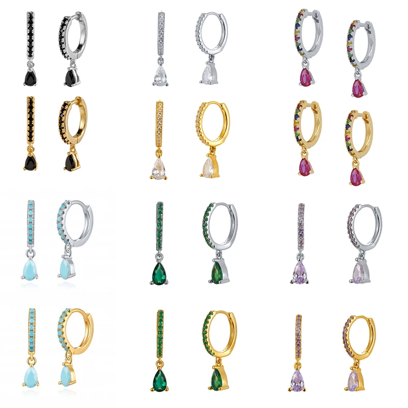 Серьги-кольца женские из серебра 925 пробы с фианитами