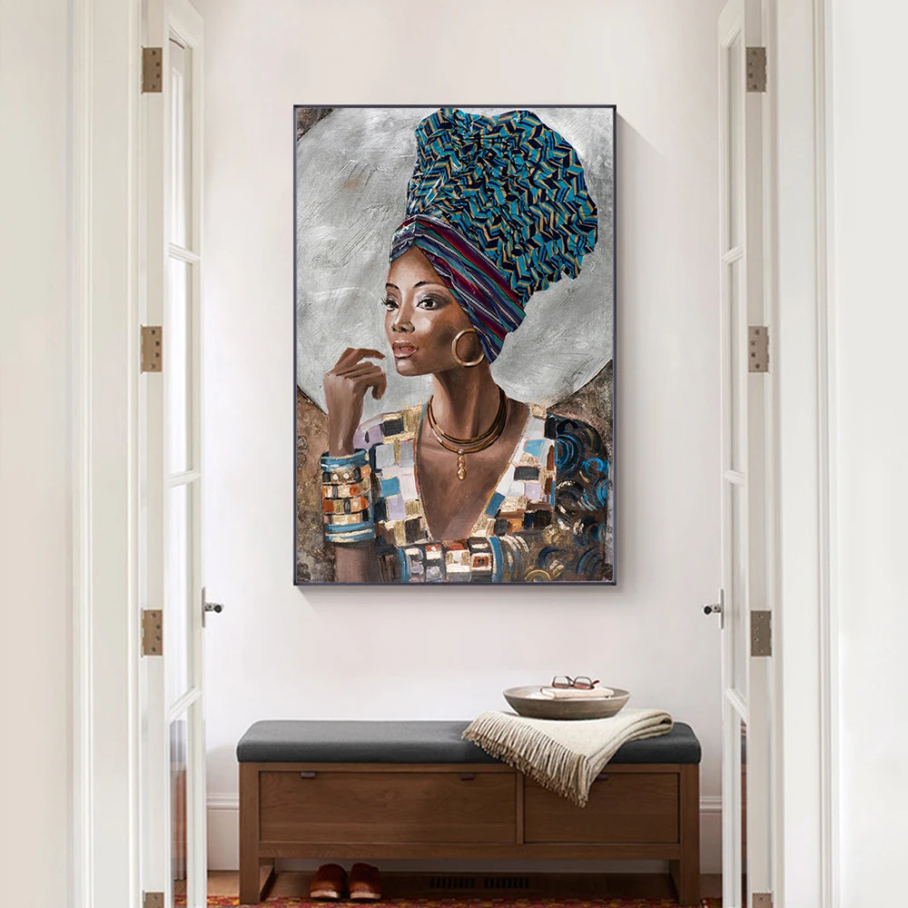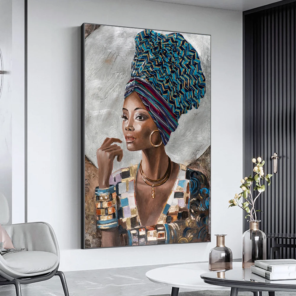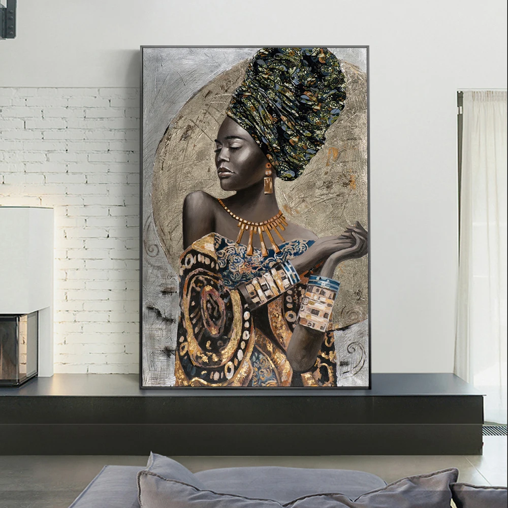 Черная Золотая Обнаженная Африканская женщина с изысканным головным убором картина маслом на холсте плакаты и принты скандинавские настенные художественные картиныОписание продукции