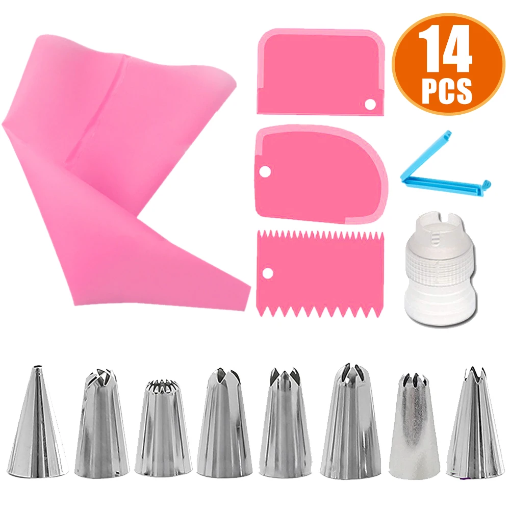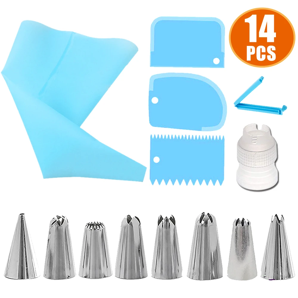 Инструменты для украшения торта силиконовые кондитерского мешка Советы торт трубы комплект многоразовый кондитерский мешок 14 головки набор + комплект из 3 предметов лопатка для крема