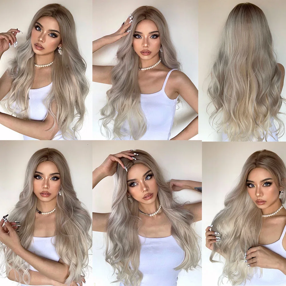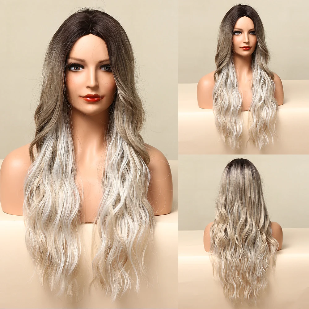 Женский парик с эффектом омбре, светлые и белые парики с длинными волнами, термостойкие синтетические парики для вечевечерние