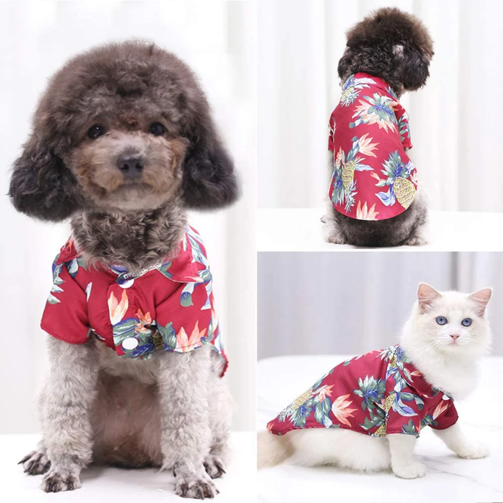 Футболка для собак с принтом, гавайская пляжная рубашка с цветочным...