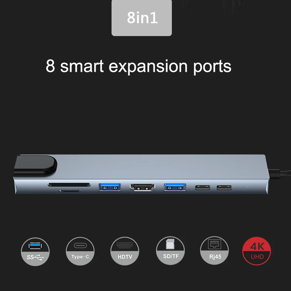 USB-концентратор 8-в-1 с Type-C на 4K HDMI-совместимый RJ45 PD для зарядки SDTF-карт