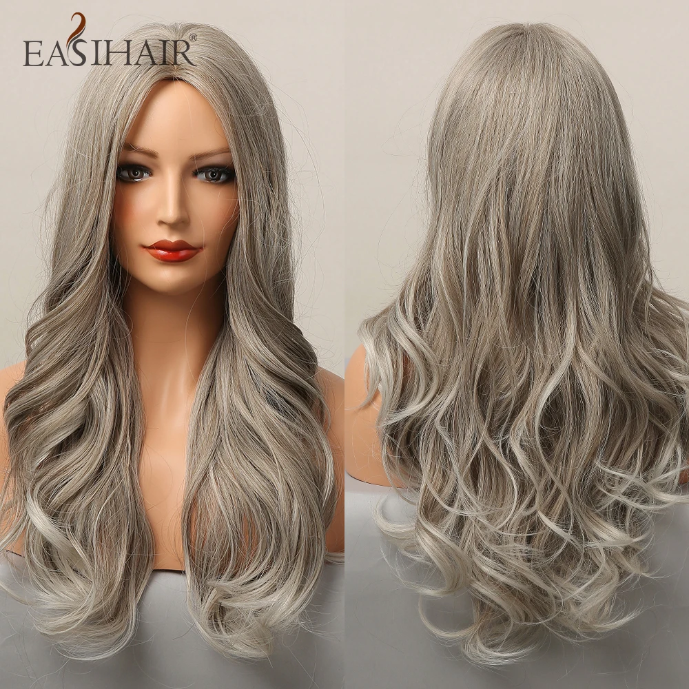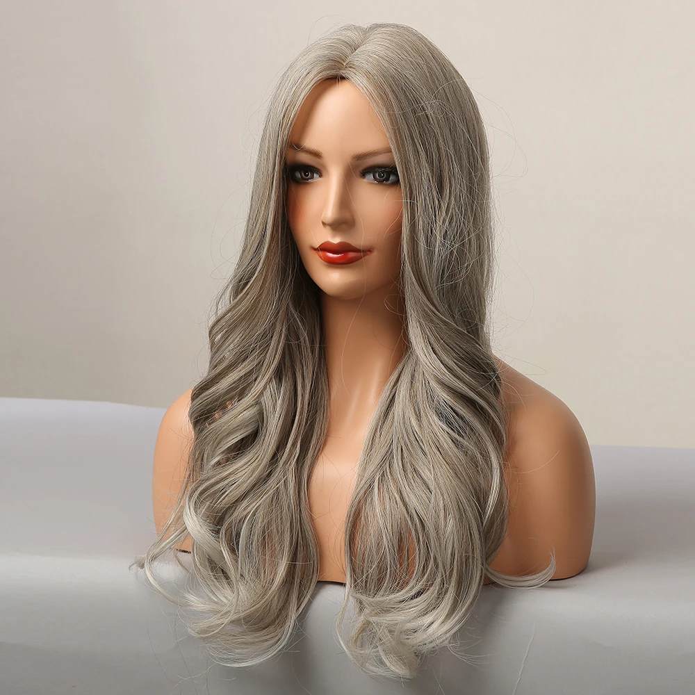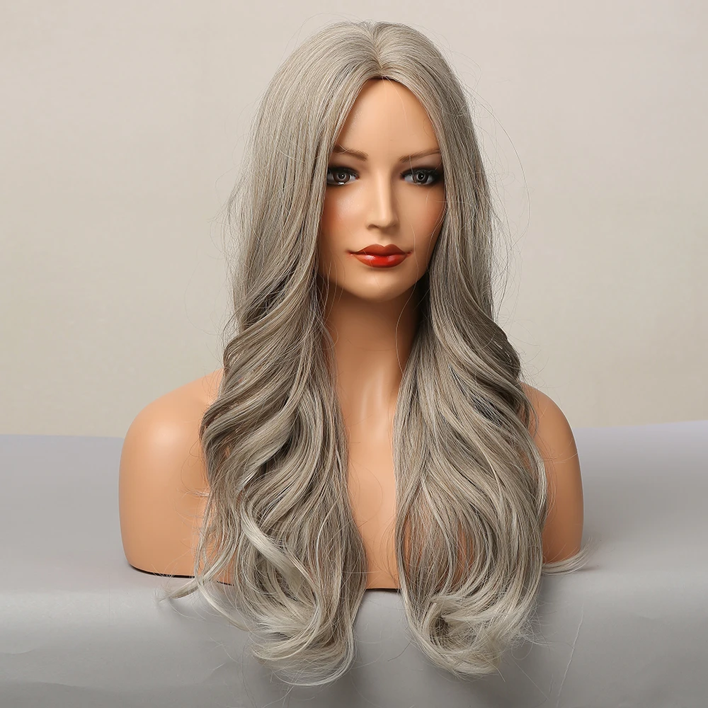 Длинные волнистые серые синтетические парики для женщин средней час...