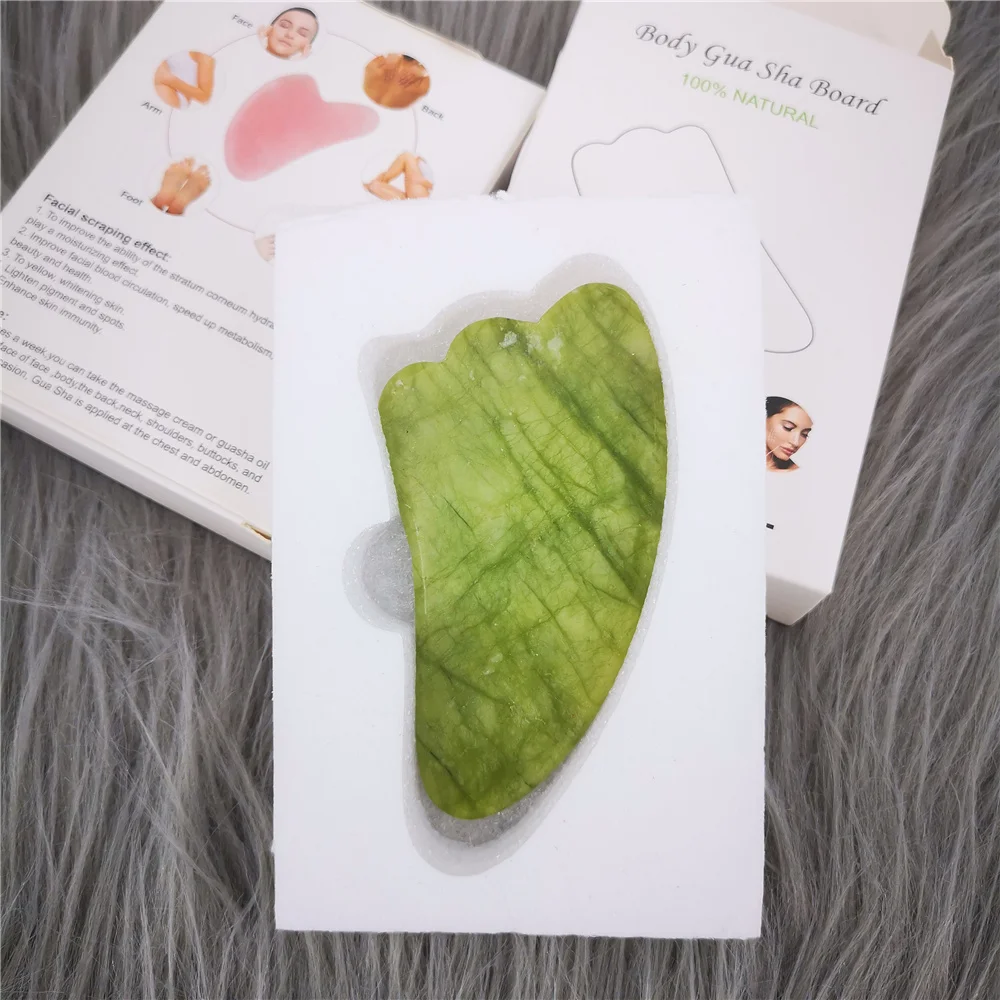 Скребок Для Массажа Гуаша из натурального нефрита, массажная доска из розового кварца, нефрит, камень для лица, шеи, кожи, лифтинг, удаление морщин, косметический уход