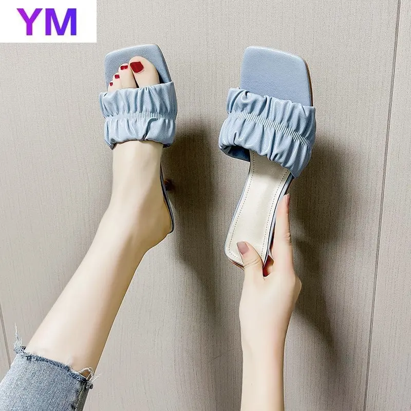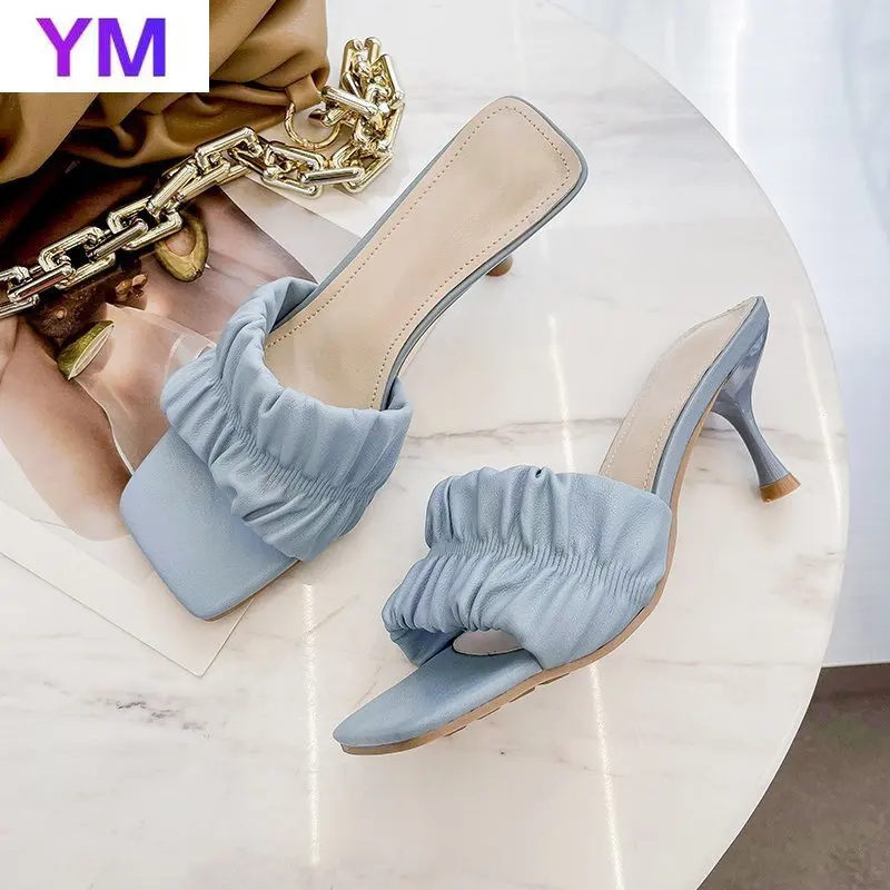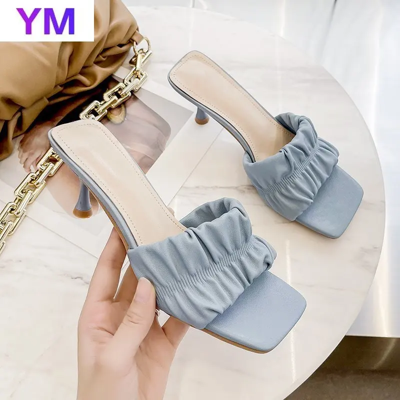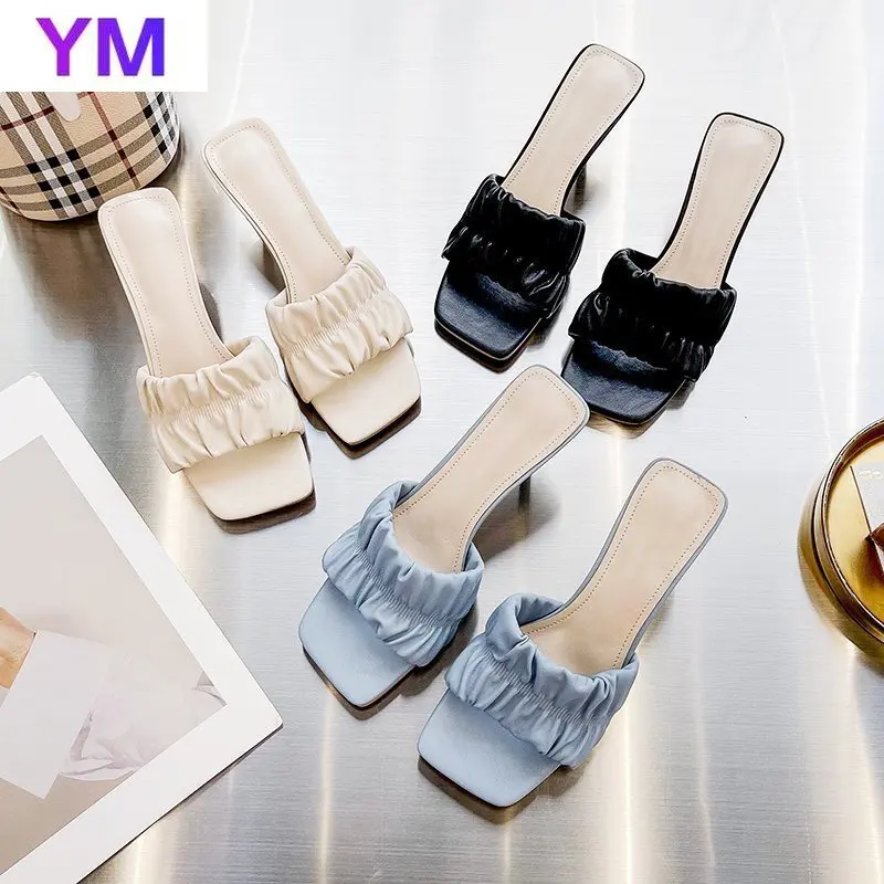 Женские Плиссированные босоножки на тонком каблуке, сандалии с квадратным носком, большие размеры 35-40, лето 2021