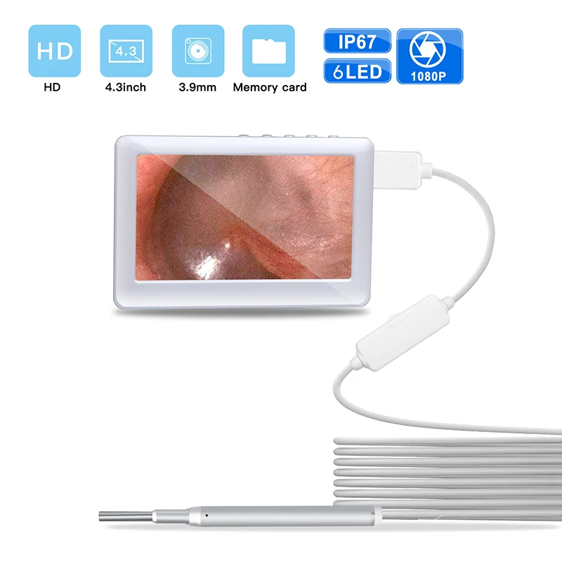 Цифровой отоскоп 4,3 дюймов ЖК-дисплей Экран ухо Сфера эндоскоп визуальная ухочистка с 6 светодиодный Ухо Уход за здоровьем инструмент для очистки 3,9 мм HD1080P