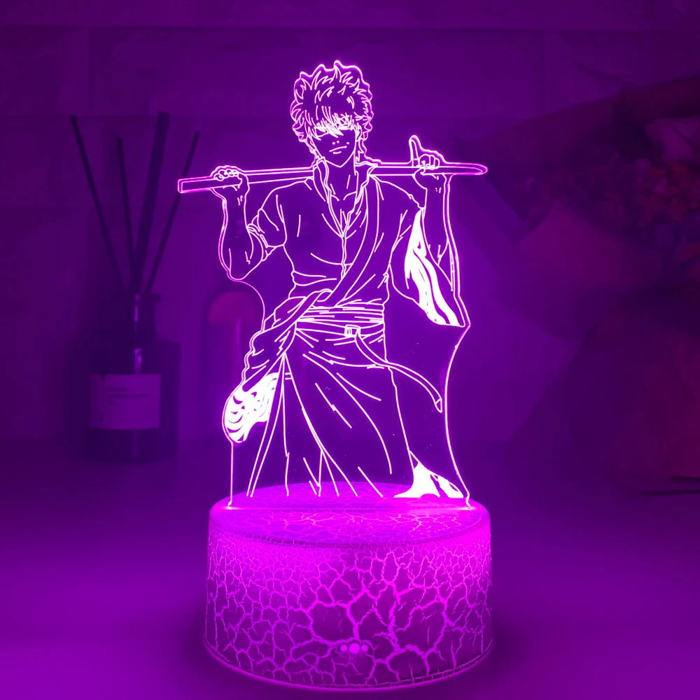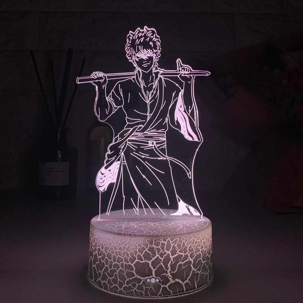 Новейшие светодиодные ночные светильники Gintama Gintoki Sakata для украшения спальни цветной ночник аниме подарок Gintama 3d лампы Gintoki Sakata