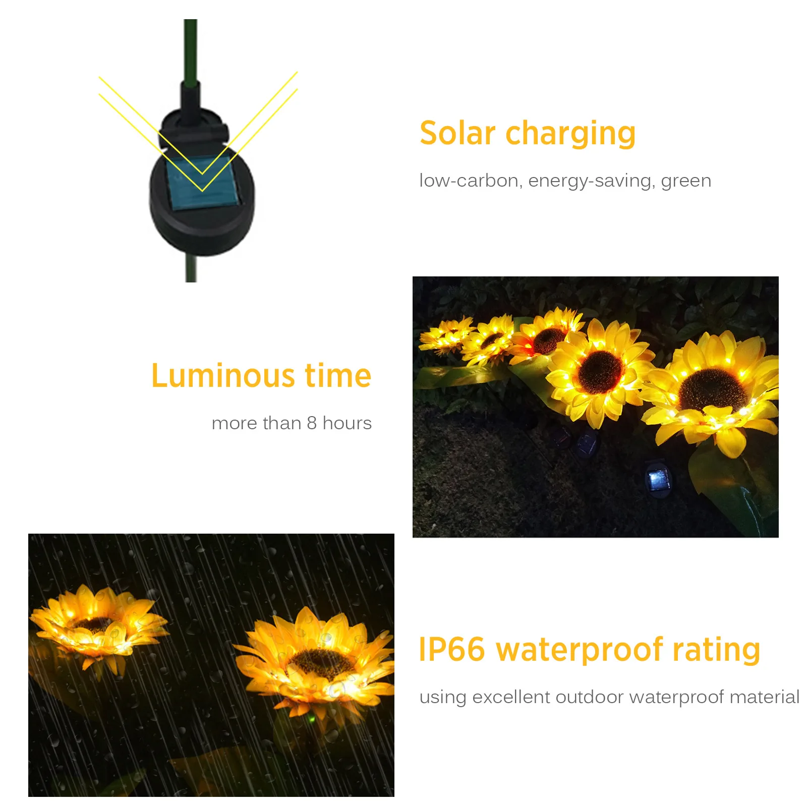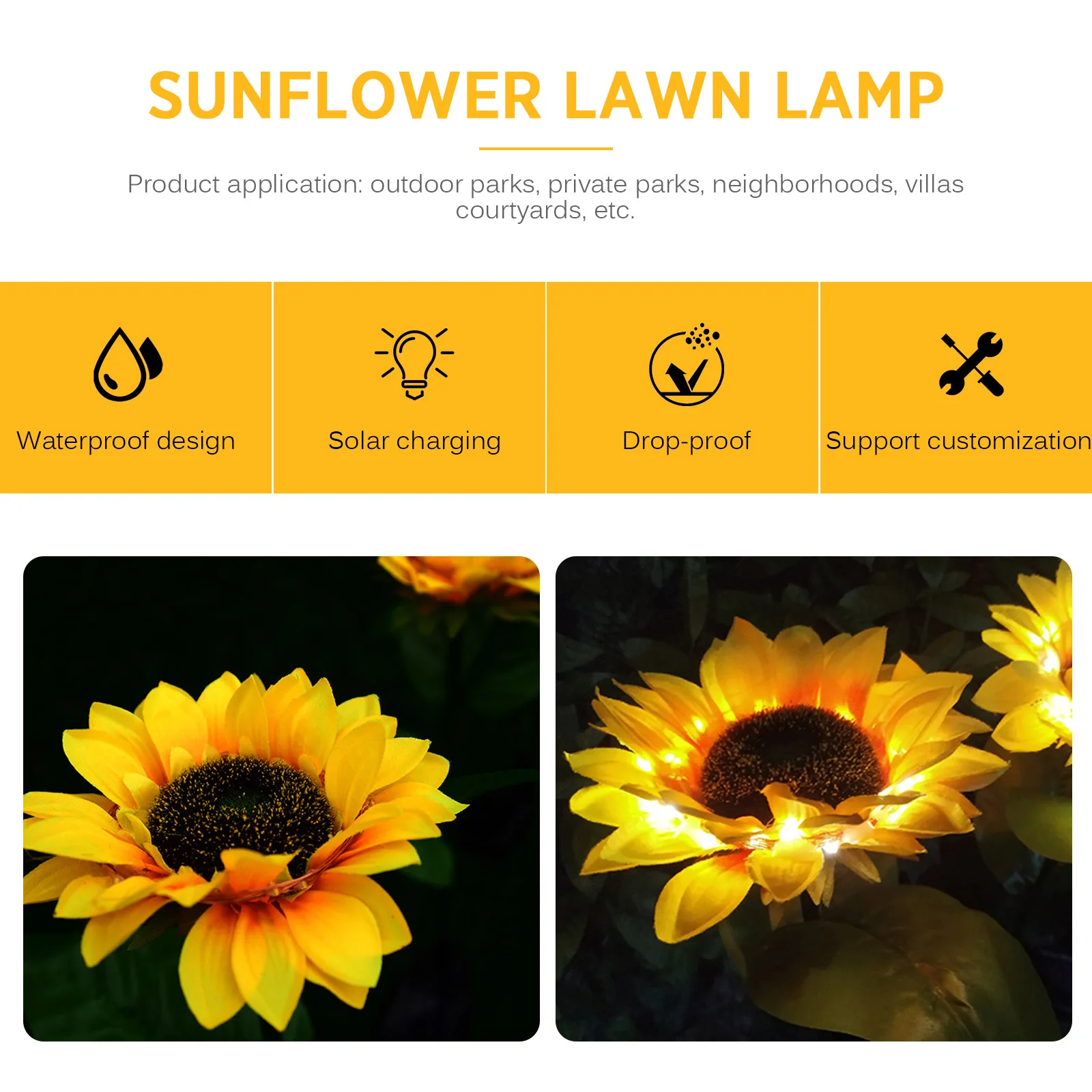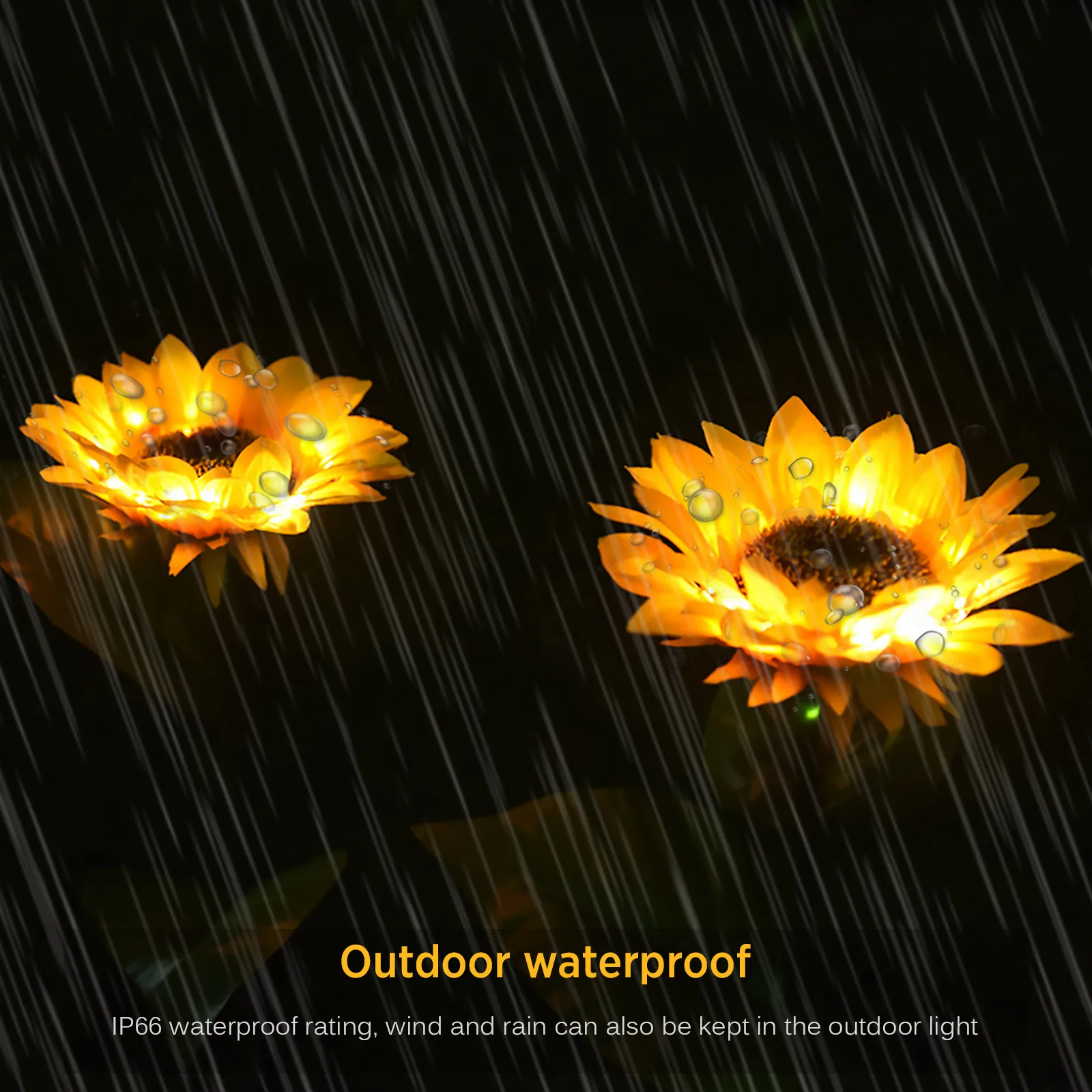 Светодиодная уличная лампа Подсолнечник на солнечной батарее, водонепроницаесветильник садовая декоративсветильник лампа на солнечной батарее, светильник онарь для газона, 2 упаковки