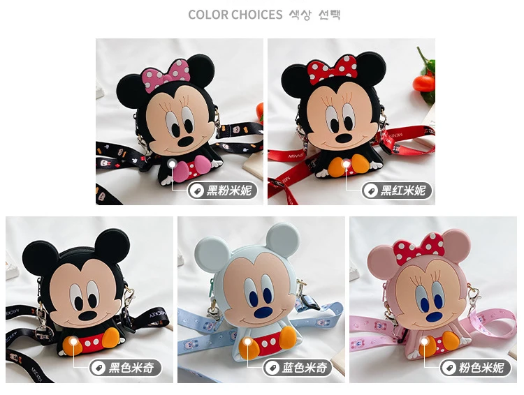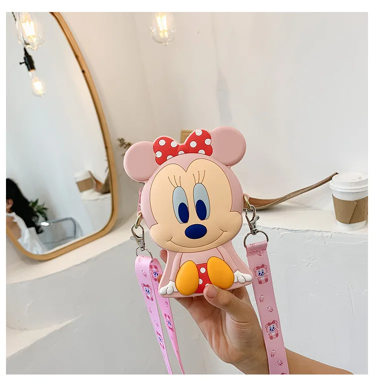 Disney Микки и Минни Маус 3D силиконовые детские мини сумка через плечо с мультипликационным принтом Детские портмоне девушки сумка Мобильный телефон сумка