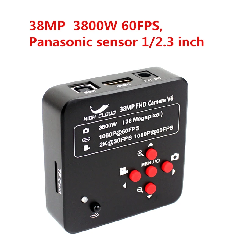 38MP HDMI USB камера характеристики:Датчик изображения: оригинальный 38 миллионов пикселей CMOS датчик PanasonicЧувствительный Размер: 1/2.3 дюйма. Больше поля зрения, чем обычно 1/3Размер пикселя: 1.335μm × 1.335μmВыходной интерфейс: HDMI (тип A), USB (тип B), tf-картаФото Выход: 38 миллионов пикселей (7120*5344)Видеовыход: 2K @ 30 кадров, 1080p @ 60 кадровВыход HDMI: прогрессивный 1920*1080 60 кадров. Одновременный выход с USBКоэффициент выхода HDMI: Поддержка 4:3, 16:9, 16:10 экрана, чтобы убедиться, что изображение не искажено.Выход USB2.0 (свободный привод): 1920*1080 @ 30 1280*720 @ 30 640*480 @ 30. Одновременный выход с HDMIОбъем памяти tf-карты: максимум 64 ГББаланс белого: один щелчок баланса белого/автоматический/ручной, R, G, B можно индивидуально отрегулироватьЭкспозиция: ручная/автоматическая. Регулируемое значение экспозицииПерекрестие: 8 линий. Регулируемый цвет, толщина и положениеПерекрестная отметка: 2 линии. Точечный крест: 2 линии. Регулируемый цвет, толщина и положениеРезкость, контрастность, насыщенность, поддержка, регулируемая, черно-белая, отрицательная пленка, поддержкаЗеркало: горизонтальное и вертикальное зеркалоЯзык: китайский/английскийЦифровой зум: ПоддержкаПульт дистанционного управления: поддерживается. Пульт дистанционного управления делает фотографии и видео без тряски.Входное напряжение: 12 В постоянного тока (поддержка 5-19 в), 55-21 большой ротИнтерфейс объектива: C/CS портРазмер изделия: 74*74*35 ммПосылка включает в себя: камеру, адаптер питания, пульт дистанционного управления, бумажное руководство, кабель HDMI120X линзы с резьбовым соединением типа C: (21,5-дюймовым монитором)Зум C-Mount LensАдаптер с-креплением 0,35 xОбъективное увеличение мощности 0.7X-4.5XРабочее расстояние: 100 ммМаксимальное поле зрения: 27 мм * 15 ммМинимальный Поле зрения: 4 мм * 2,3 мм180X линзы с резьбовым соединением типа C: (21,5-дюймовым монитором)Зум C-Mount LensАдаптер с-креплением 0,5xОбъективное увеличение мощности 0.7X-4.5XРабочее расстояние: 100 ммМаксимальное поле зрения: 18,5 мм * 10,5 ммМинимальное поле обзора: 2,8 мм * 1,6 мм300X линзы с резьбовым соединением типа C: (21,5-дюймовым монитором)Зум C-Mount Lens1X C-mount адаптерОбъективное увеличение мощности 0.7X-4.5XРабочее расстояние: 100 ммМаксимальное поле зрения: 9,5 мм * 5,5 ммМинимальный Поле зрения: 1,5 мм * 1 мм56 светодиодный светильник источник:56 Белый светодиодный лампы100000 часов жизниСильный и концентрированный бестеневой светильникЯркость 0-100% регулируемая, высокая яркостьУправление переменной интенсивностьюВходная мощность: 100-240 В переменного тока, 50-60 ГцПодходящий диаметр объектива: 30 мм-61 мм