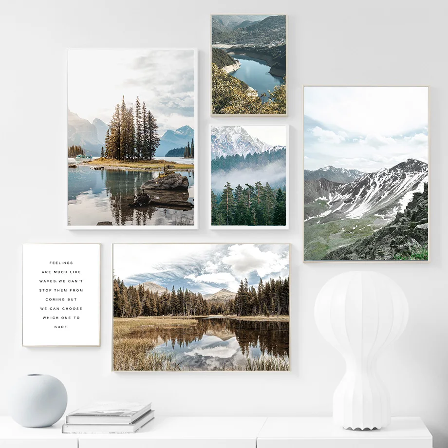 Настенная картина с изображением гор реки леса монстеры кактуса рос...