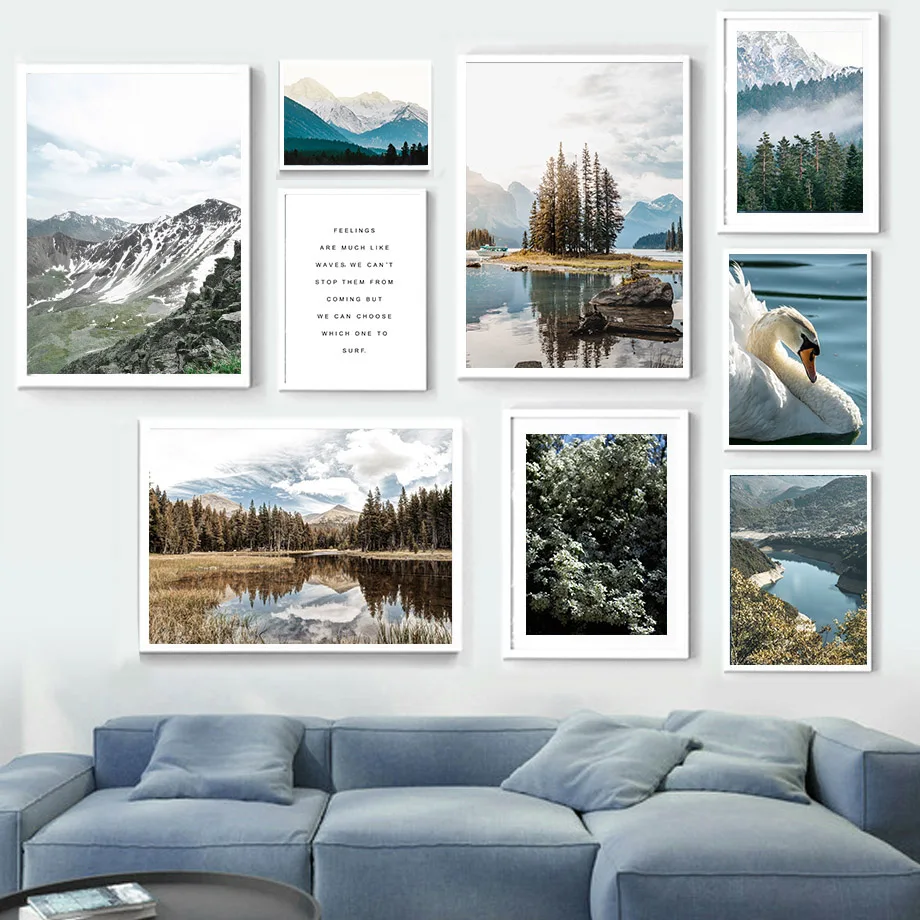 Настенная картина с изображением леса оленя озера горного водопада ...