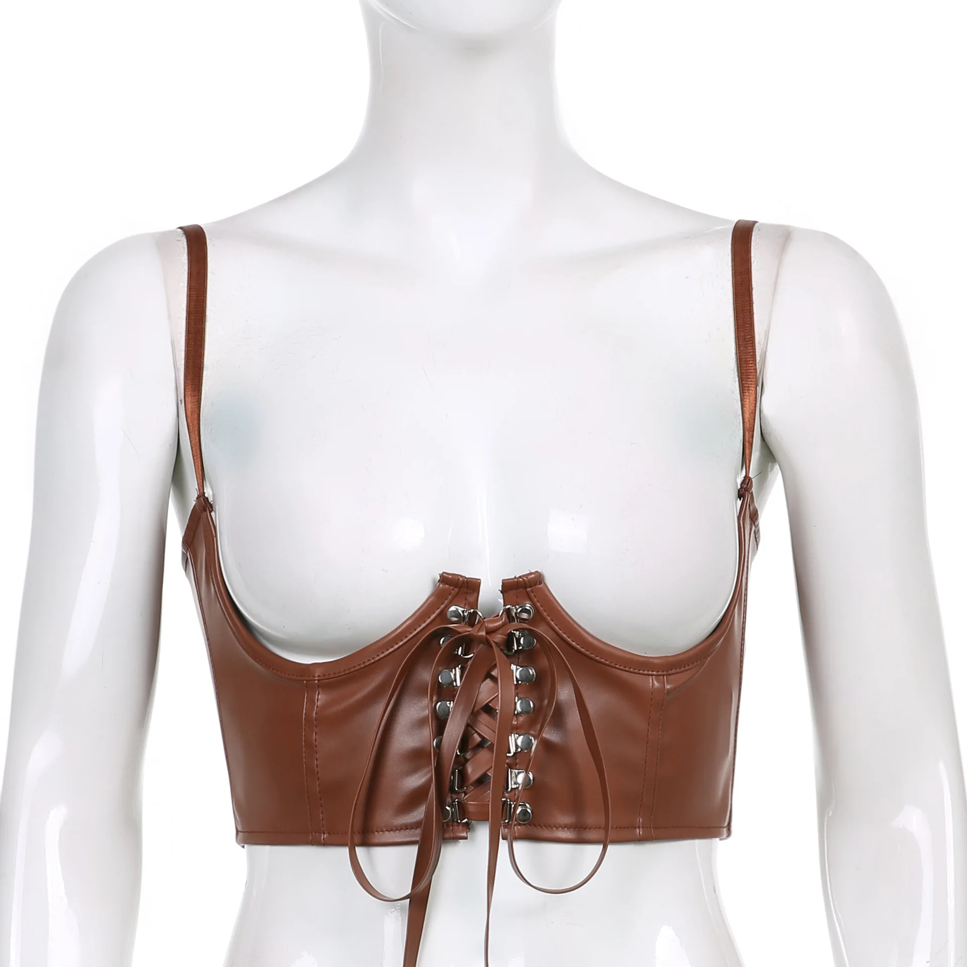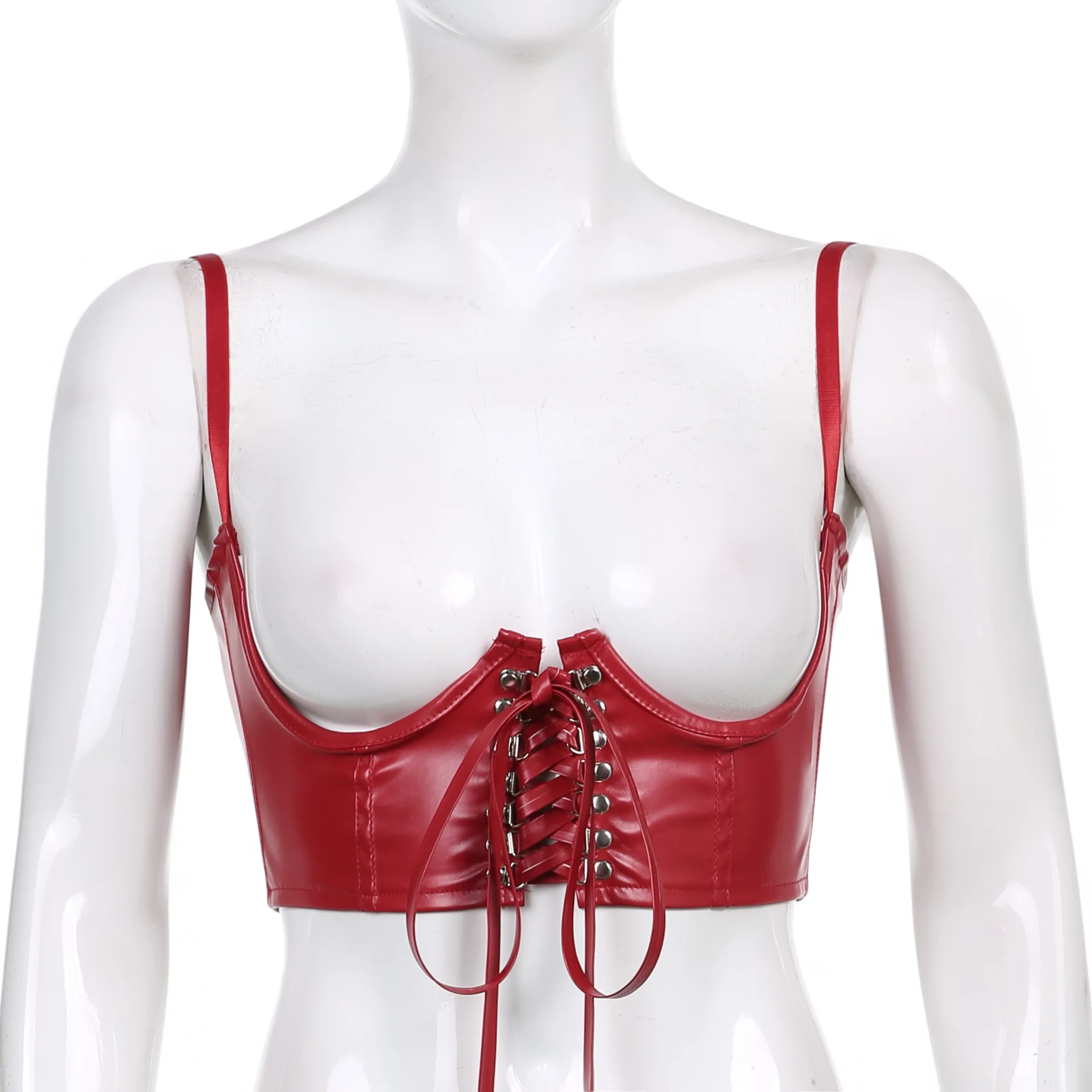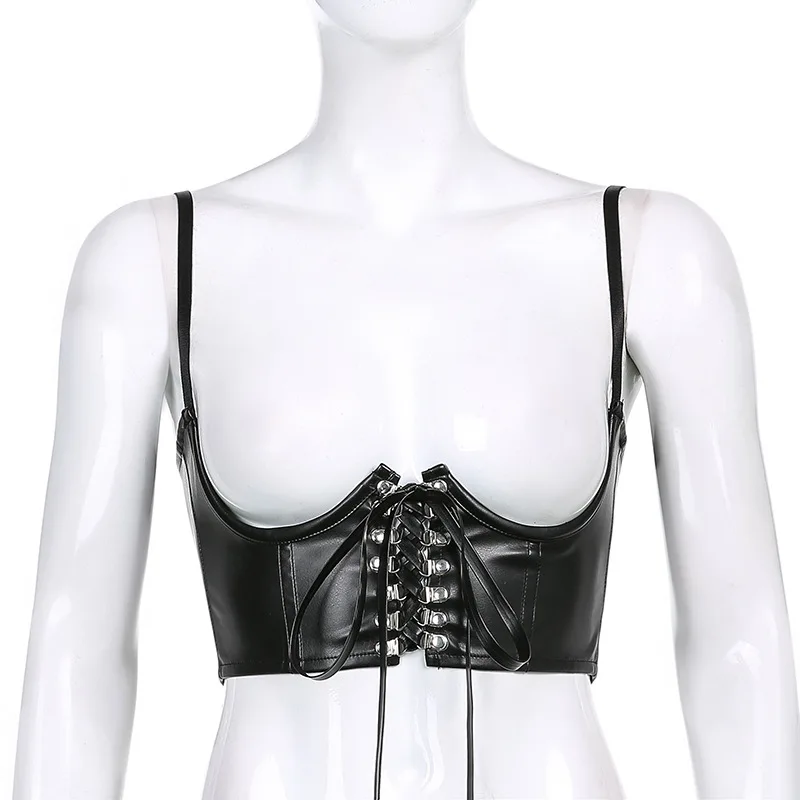 Готический корсет из искусственной кожи, женский укороченный топ на...
