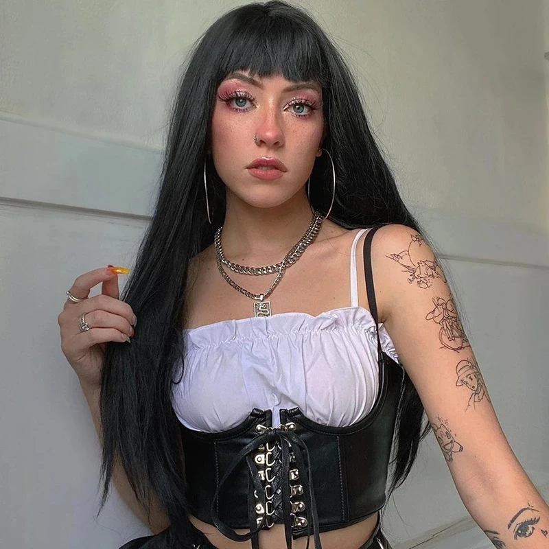 Уличная одежда Harajuku, готический черный укороченный топ из искус...
