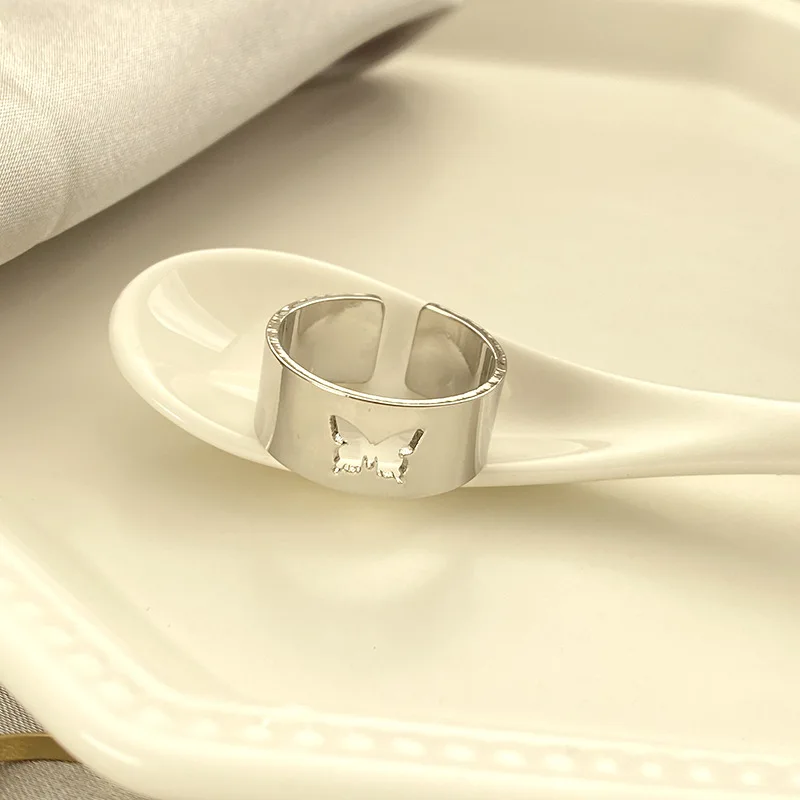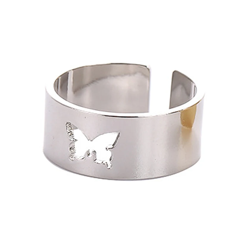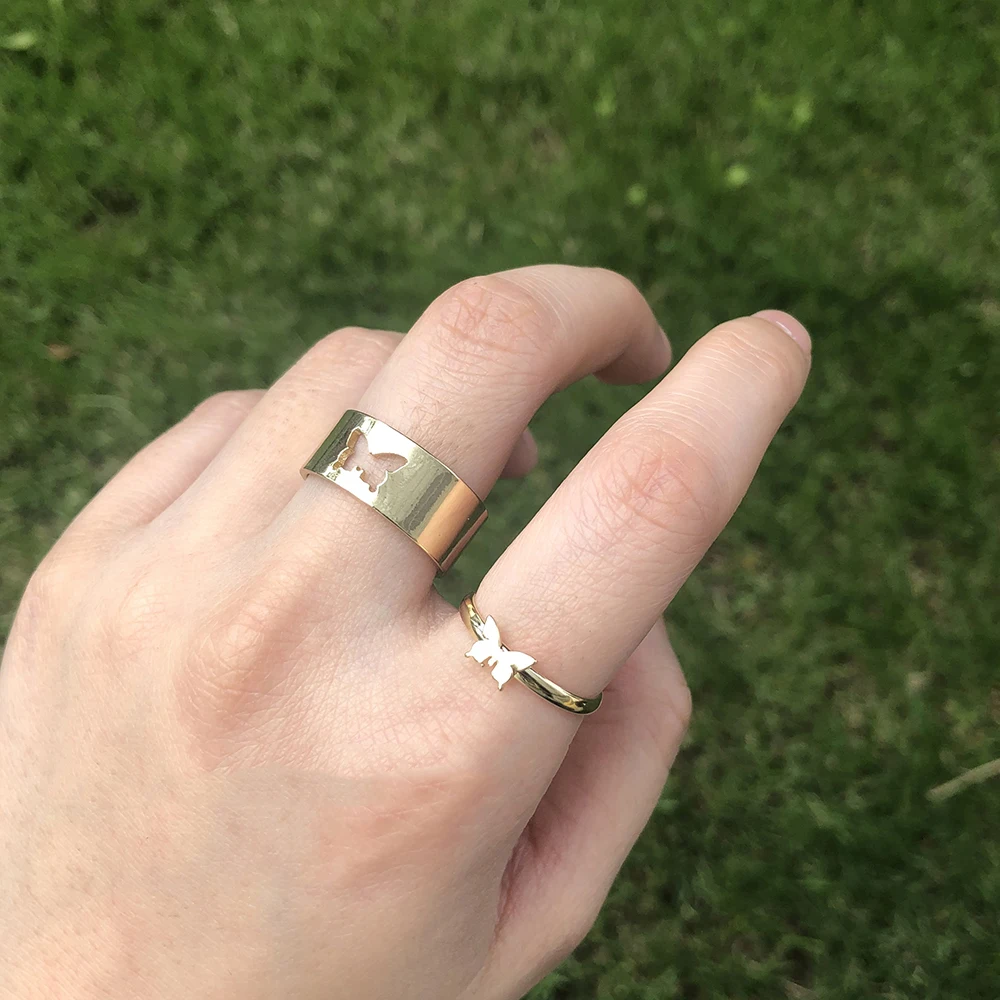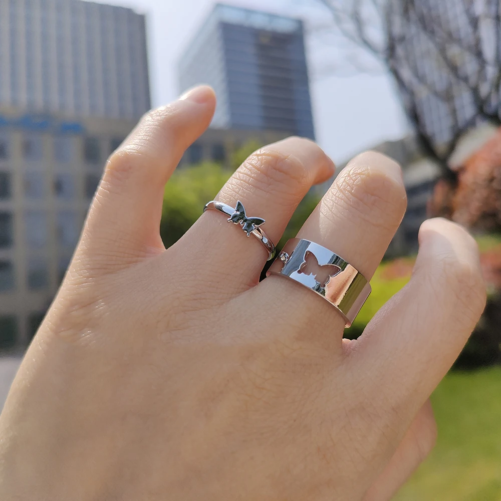 Обручальные кольца с бабочкой из медного сплава, регулируемые открытые мужские и женские кольца, трендовые металлические женские ювелирные аксессуары, 1 пара