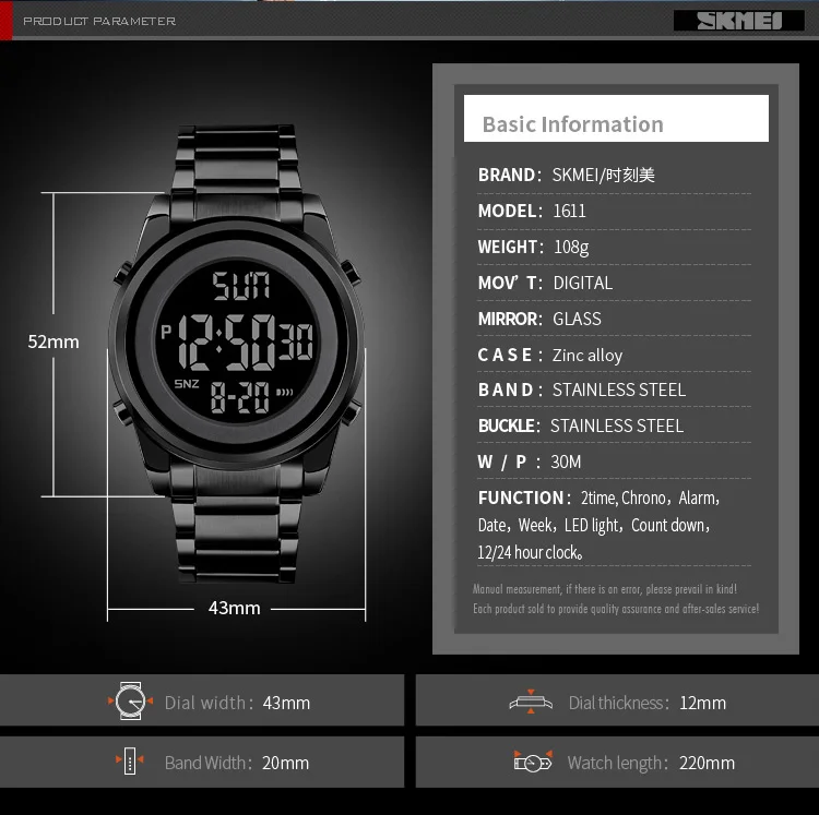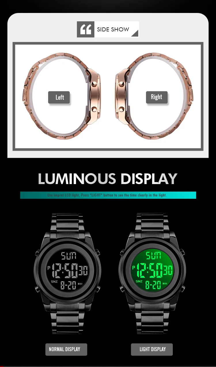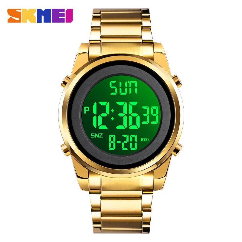 Часы SkmeiRound мужские электронные с стальным ремешком, простые цифровые многофункциональные светящиеся водонепроницаемые, с таймером, 1611