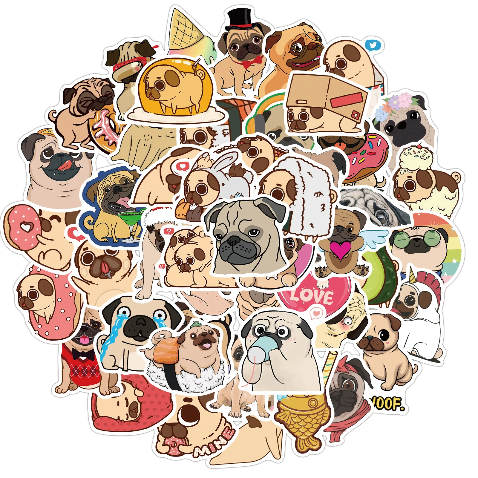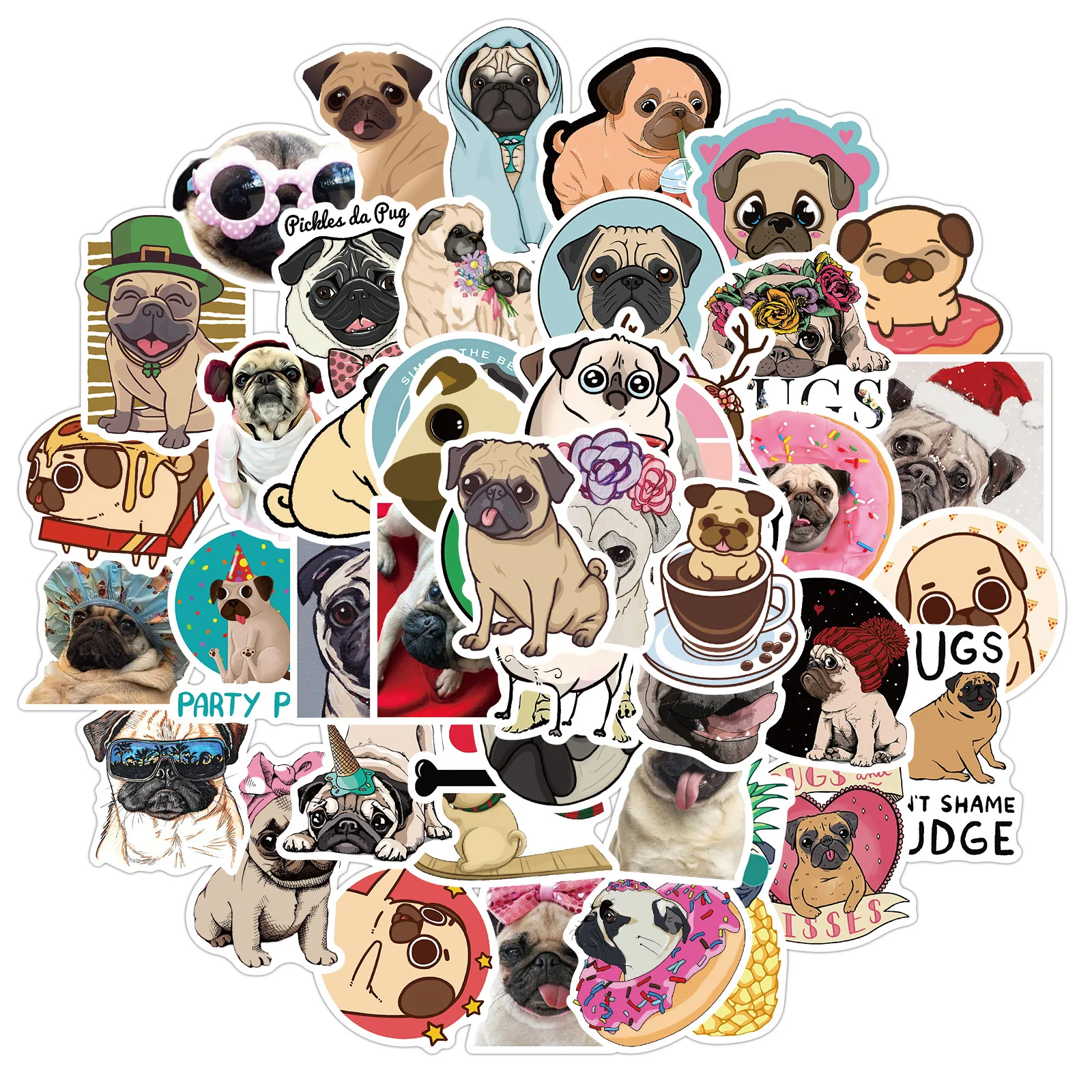 10/50 шт в наборе, милые животные наклейки с изображениями собак книжная полка с фигурой мопса, чемодан для ноутбука скейтборд телефон гитары Чемодан футболка с декором в виде наклейка Водонепроницаемый ПВХ