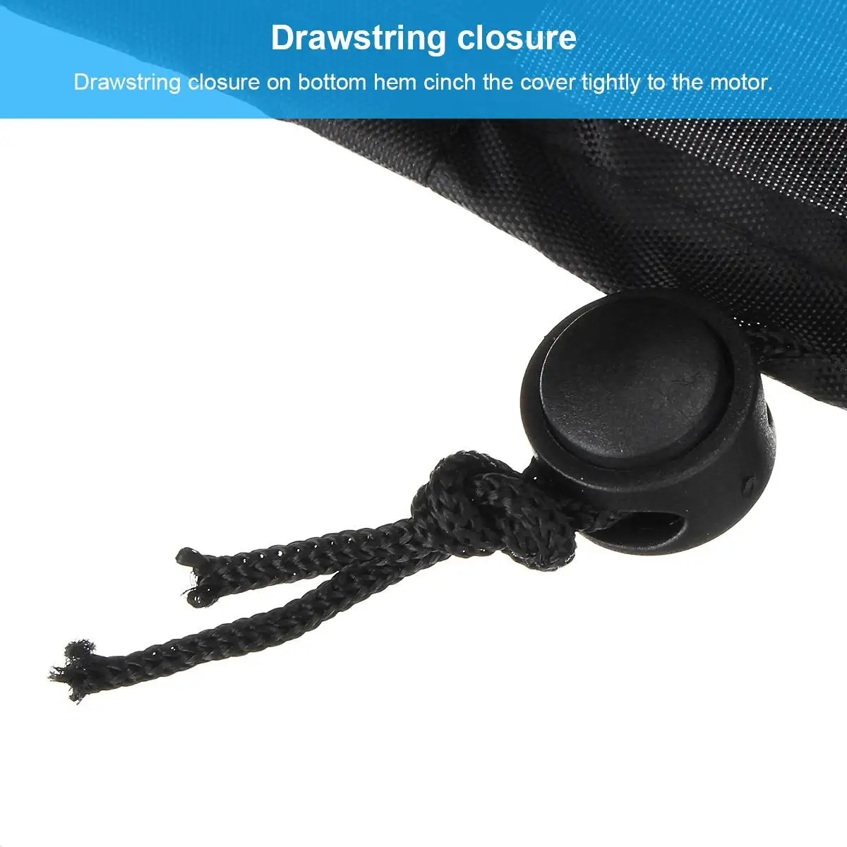 Особенности и преимущества:1. Поверхность покрытия, изготовленная из полиэстера, имеет большое количество солнечных лучей, водонепроницаемость, пылестойкость, защита от ветра и холода.2. Материал высокой плотности-эффективно блокирует пыль во внутренней части двигателя.3. Высокая чувствительность отражающая производительность-блокирует ультрафиолетовые лучи, в некоторой степени, защищает цвет двигателя не выцветает.4. Водонепроницаемый дизайн-защита дождевой воды и морской воды в двигатель, чтобы сохранить ее сухой.5. Конструкция с защитой от царапин-предотвращает царапины поверхности от s harp товаров.6. Застежка на шнурке на нижней кромке плотно прилегает к мотору.7. Идеально подходит для лодок, которые требуют отдельной защиты от подвесного мотора.8. Для использования только тогда, когда двигатель не работает.