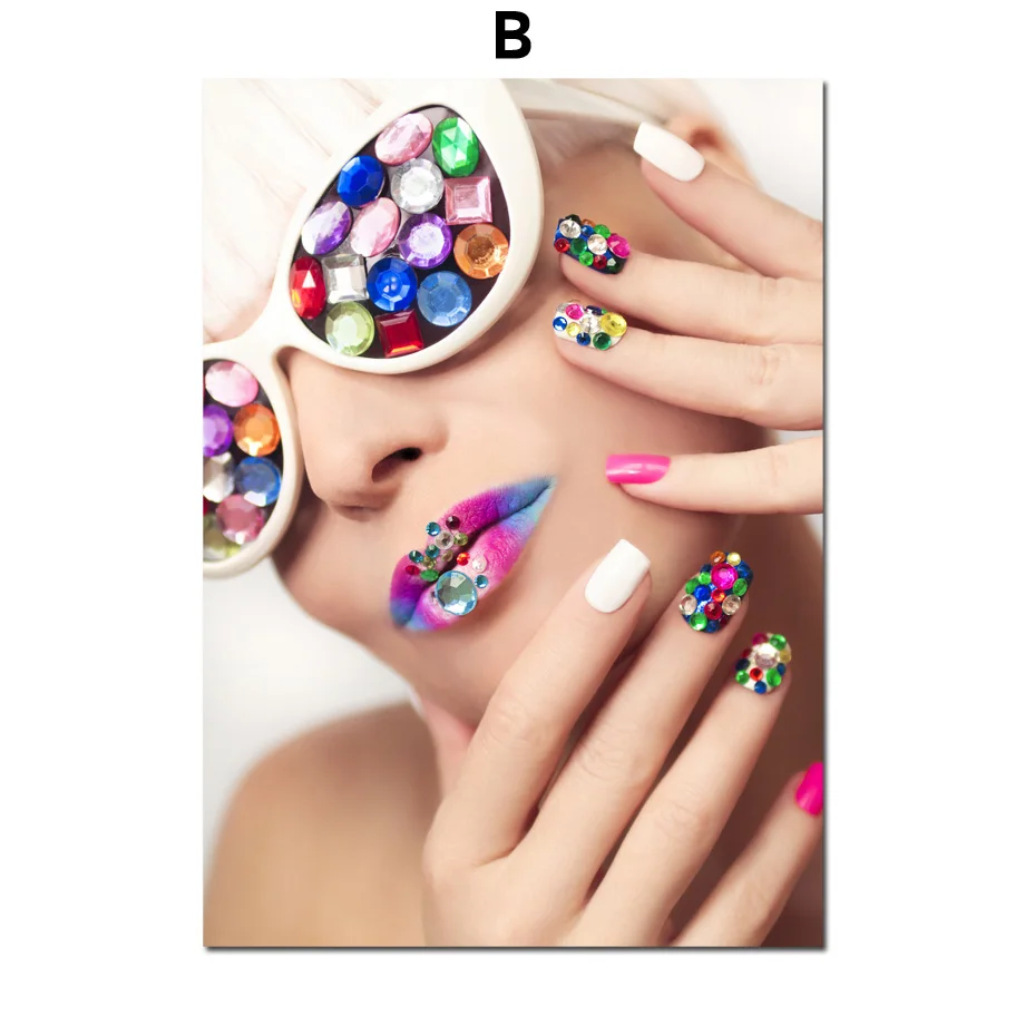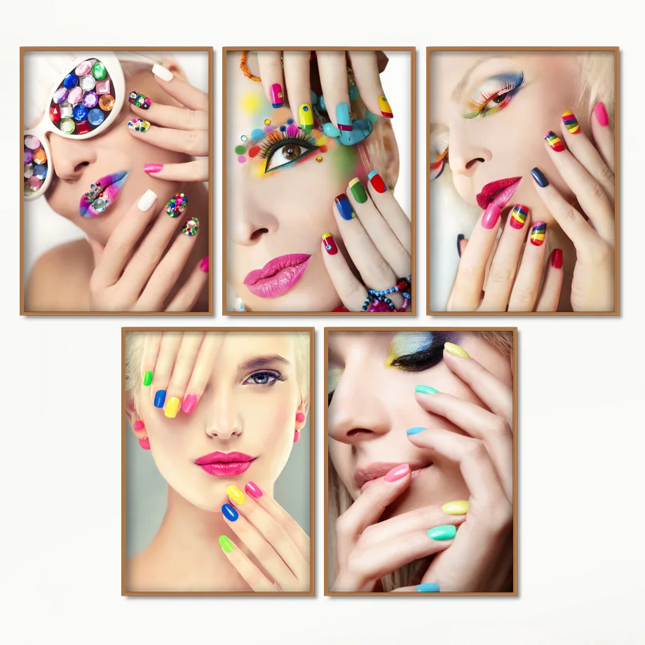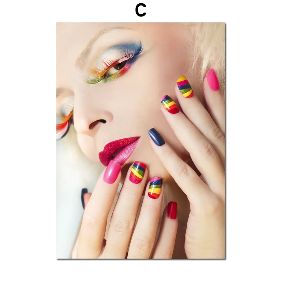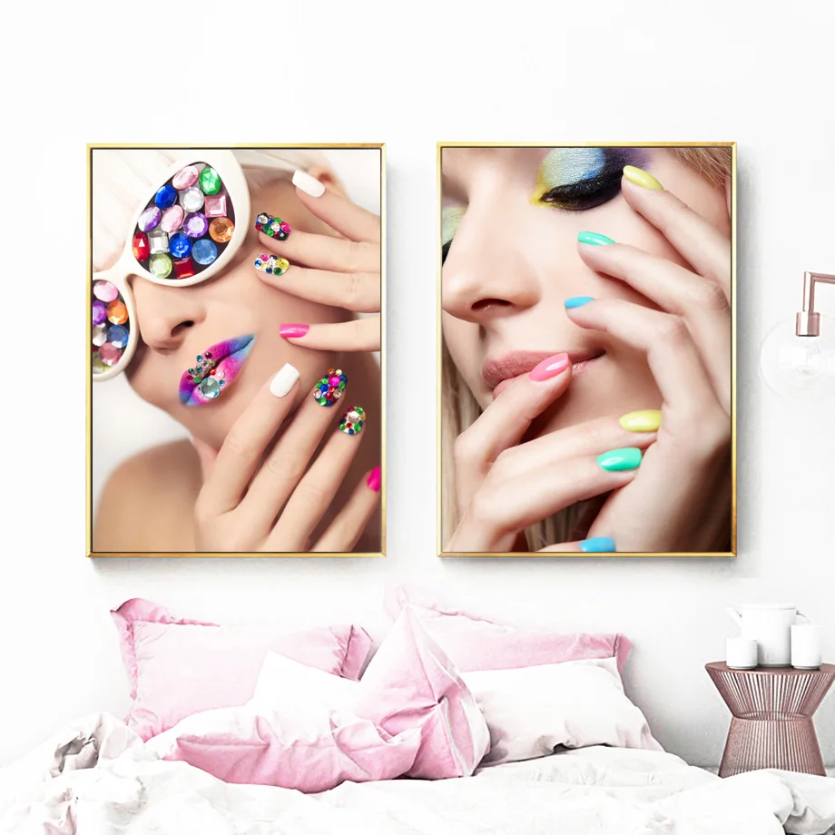 Лак для ногтей, тени для век, модная девушка, настенная Картина на холсте, скандинавские плакаты и принты, настенные картины, косметика, украшение для салона красоты