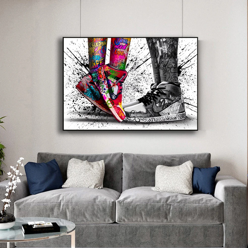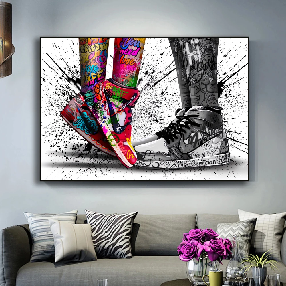 Граффити пара ношения кроссовки настенная живопись спортивная обувь...