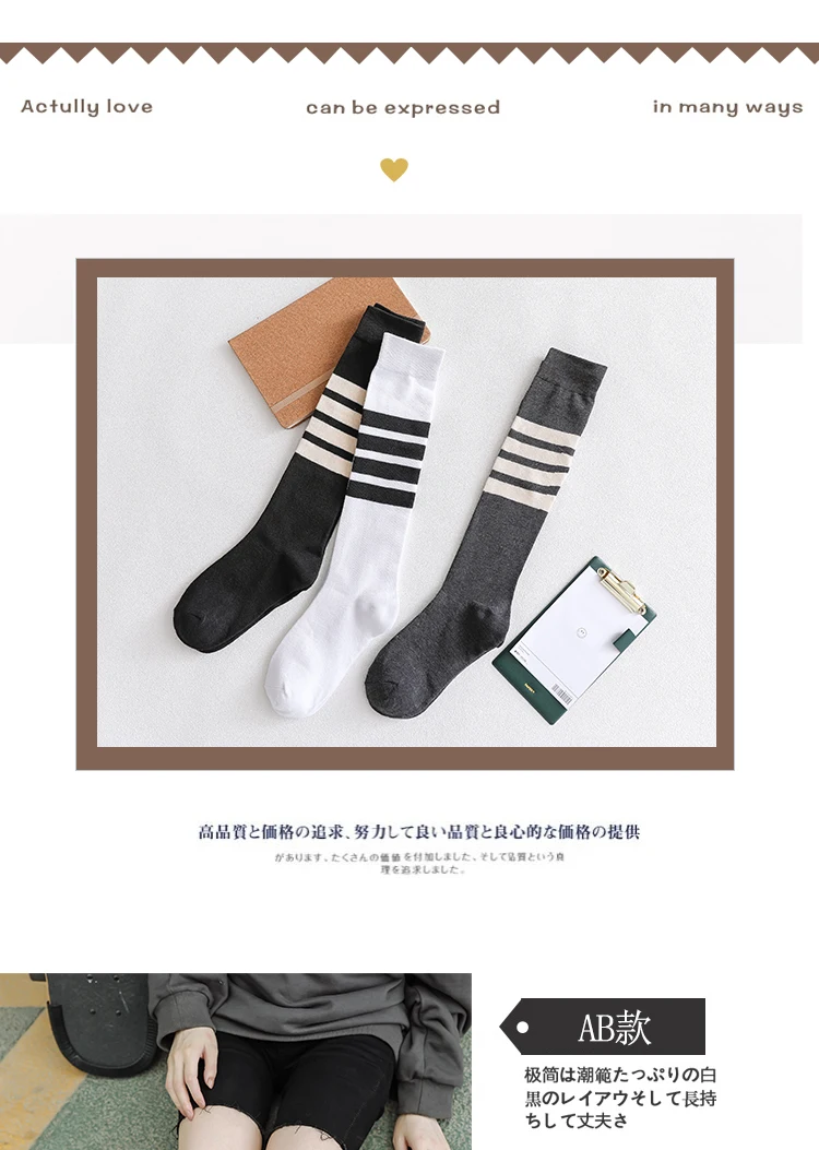 Женские длинные носки, теплые хлопковые носки до колен в Корейском стиле, модные женские носки до колена в полоску, носки для девочек, Школьные носки в стиле "Лолита"