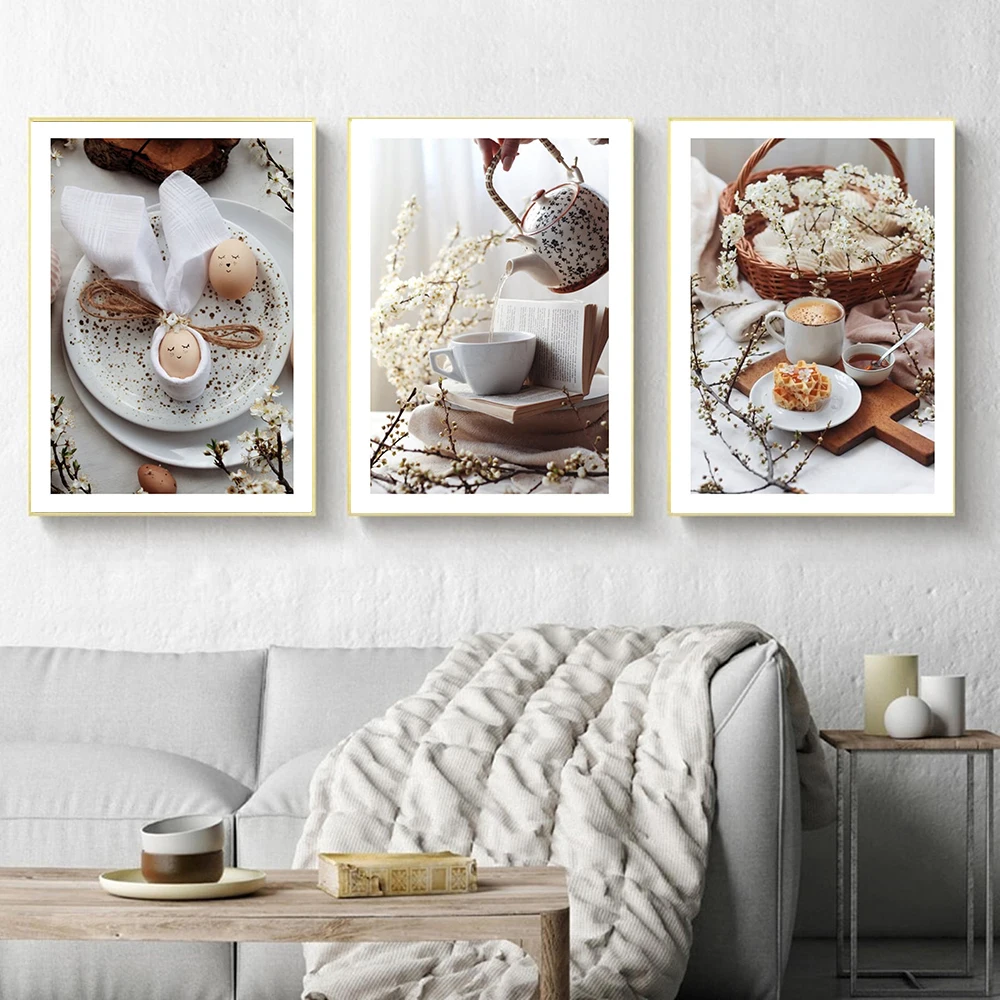 Картина на холсте с изображением чая, хлеба, яиц, еды, Современное украшение для дома, Настенная картина для кухни, Декор, скандинавские плакаты и принты, украшение