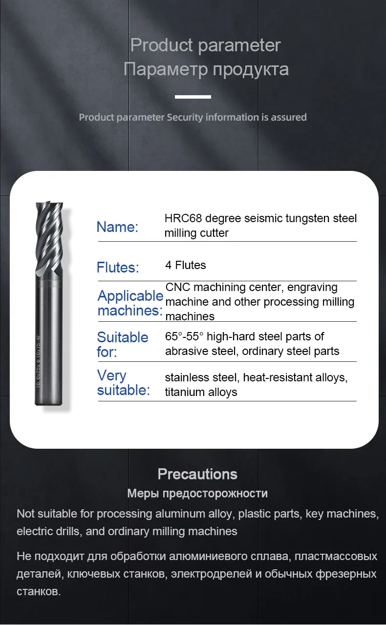 Твердосплавные концевые фрезы HRC68, специальный центр обработки из вольфрама, нержавеющей стали и титанового сплава, с 4 канавками